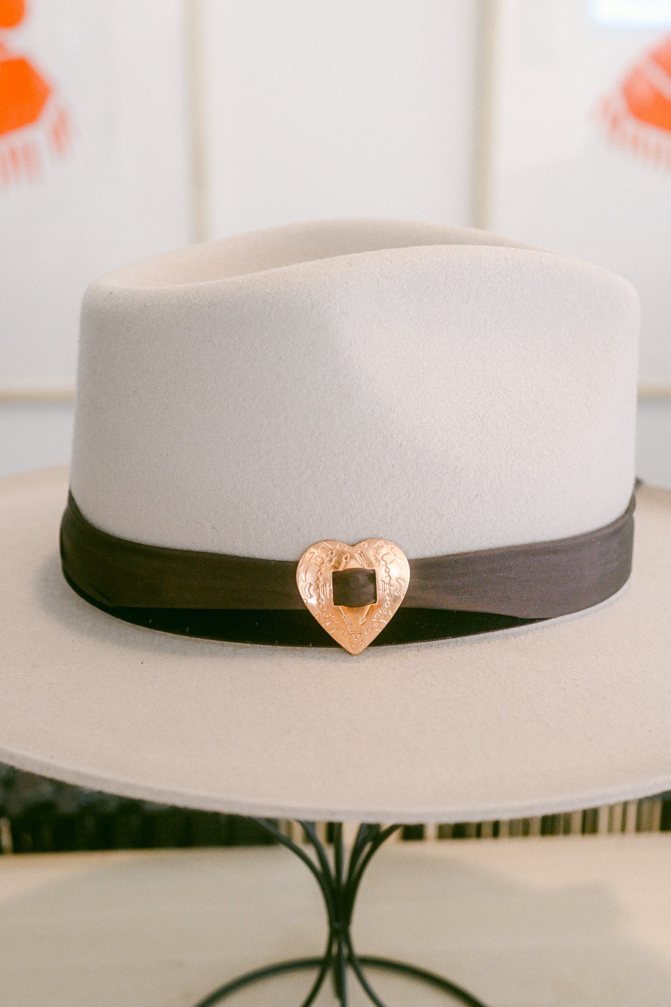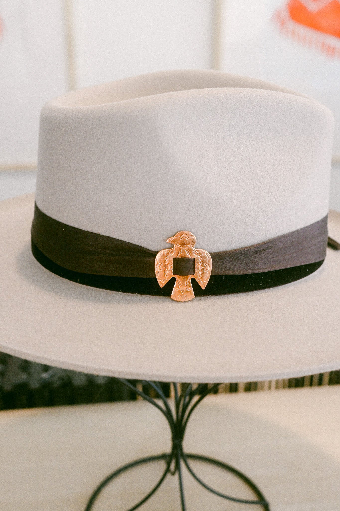 Antique etched concho slides, with the choice of either a heart, thunderbird, or circle. Measuring between 1" - 1.5". These work well with ribbon or cord up to 1" in width, to tie on to your hat. Please note that these are antique and may have some patina.