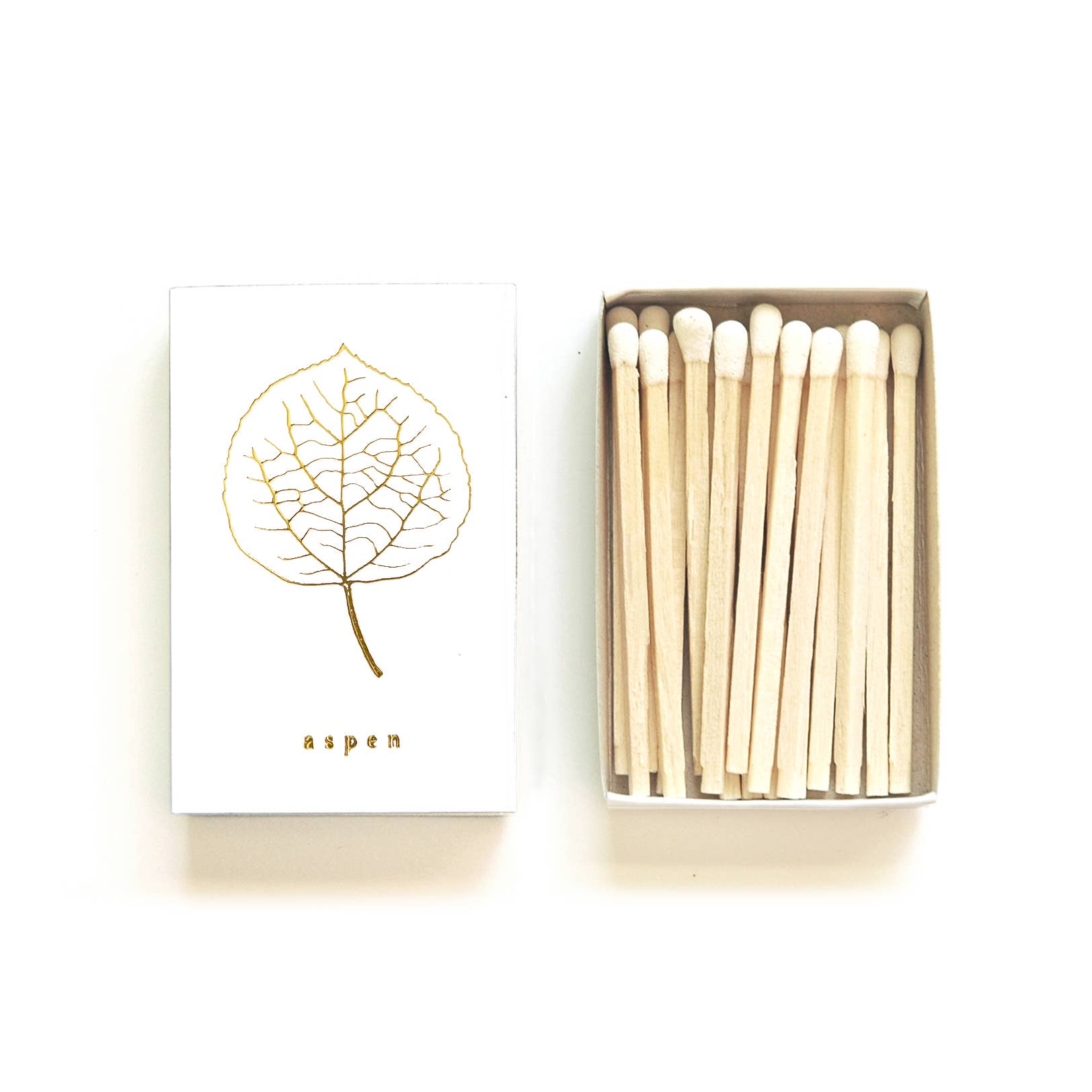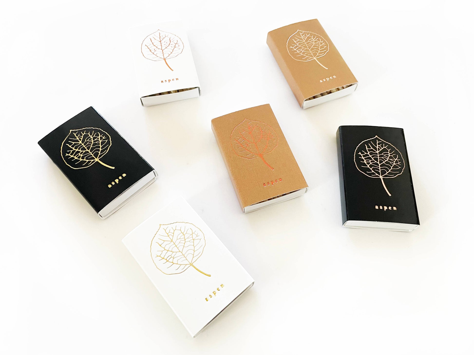 Adorned with a miniature botanical illustration of an aspen leaf on the outer lid in your choice of foil press color on a black, white, or gold box, this tiny matchbox adds the perfect touch of fall. This match holder makes a wonderful gift for hikers, mountain lovers, road trippers, skiers, or those who simply love the outdoors.
