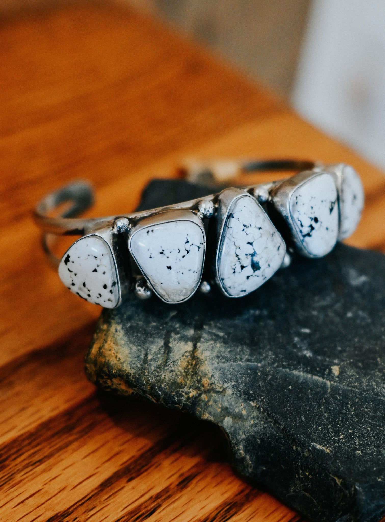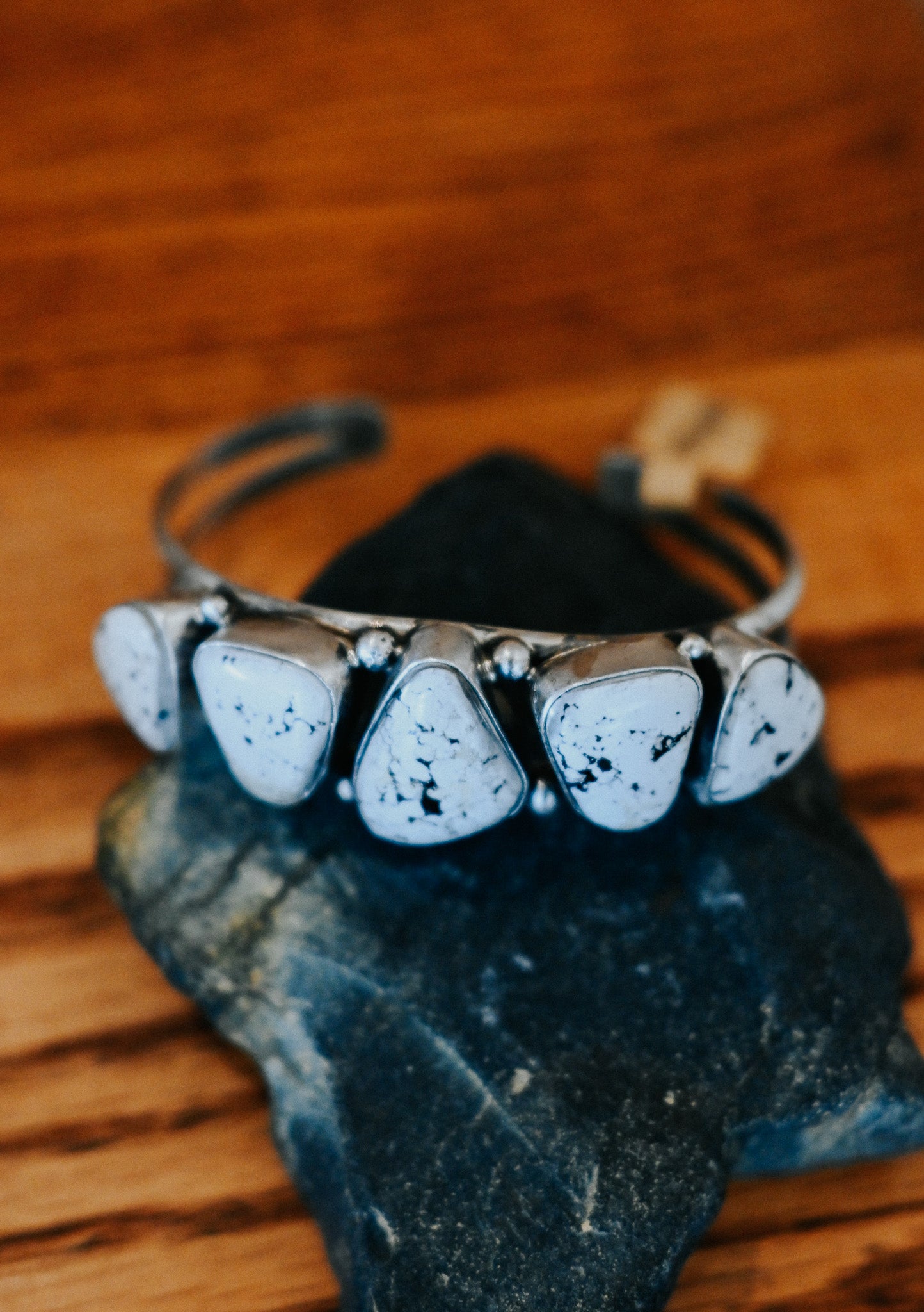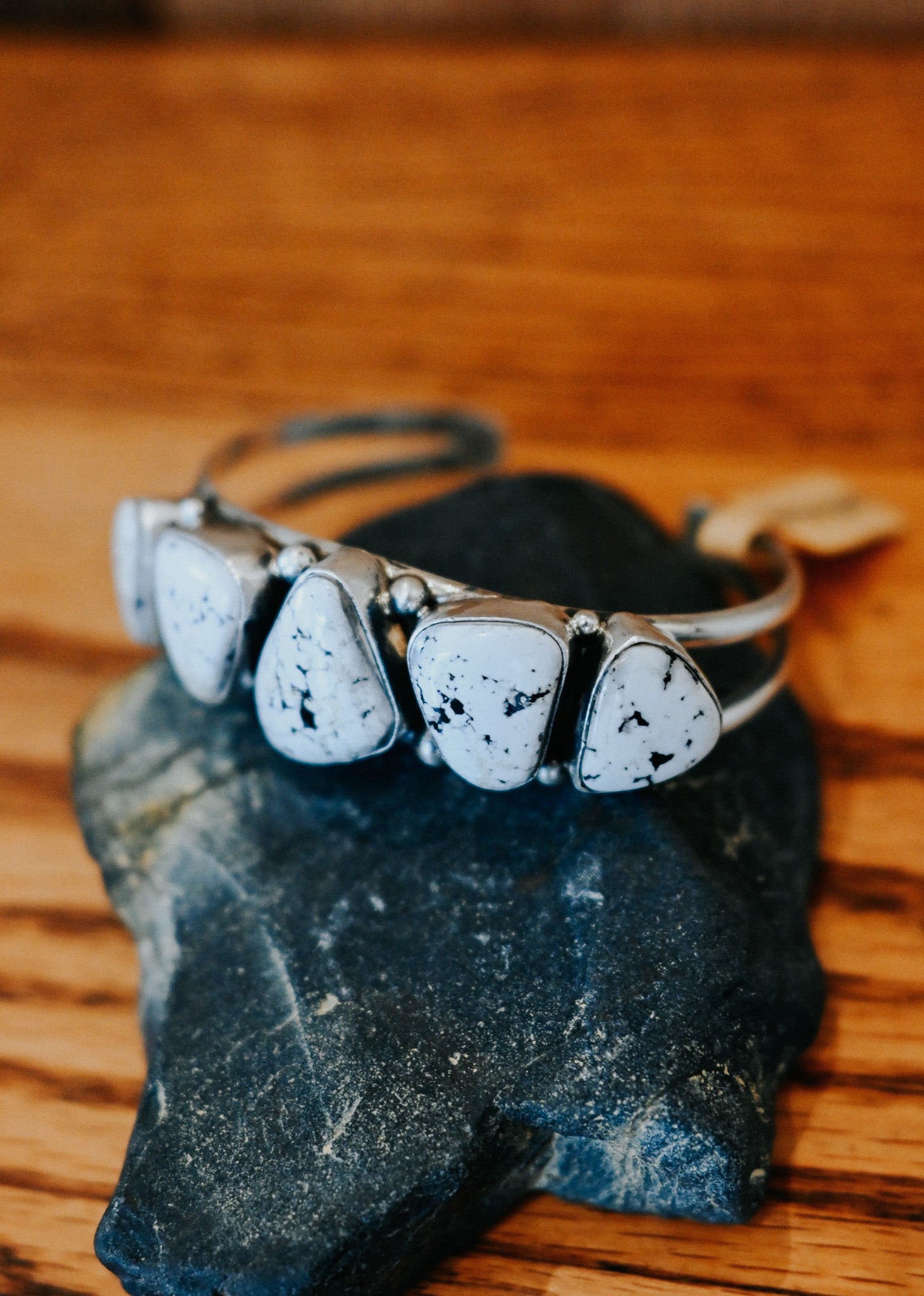 Augistine Largo Navajo Handmade White Buffalo Sterling Silver Bracelet