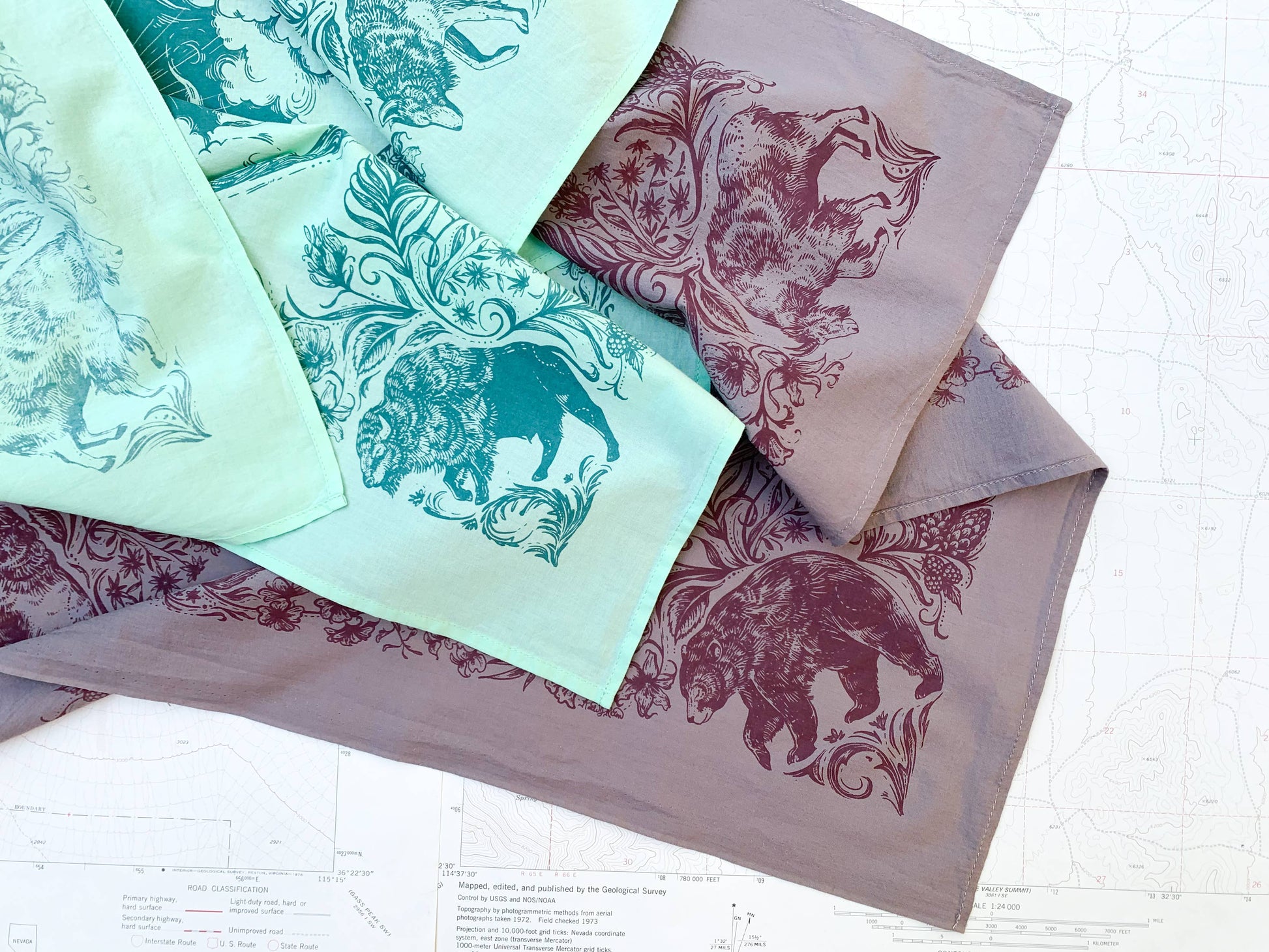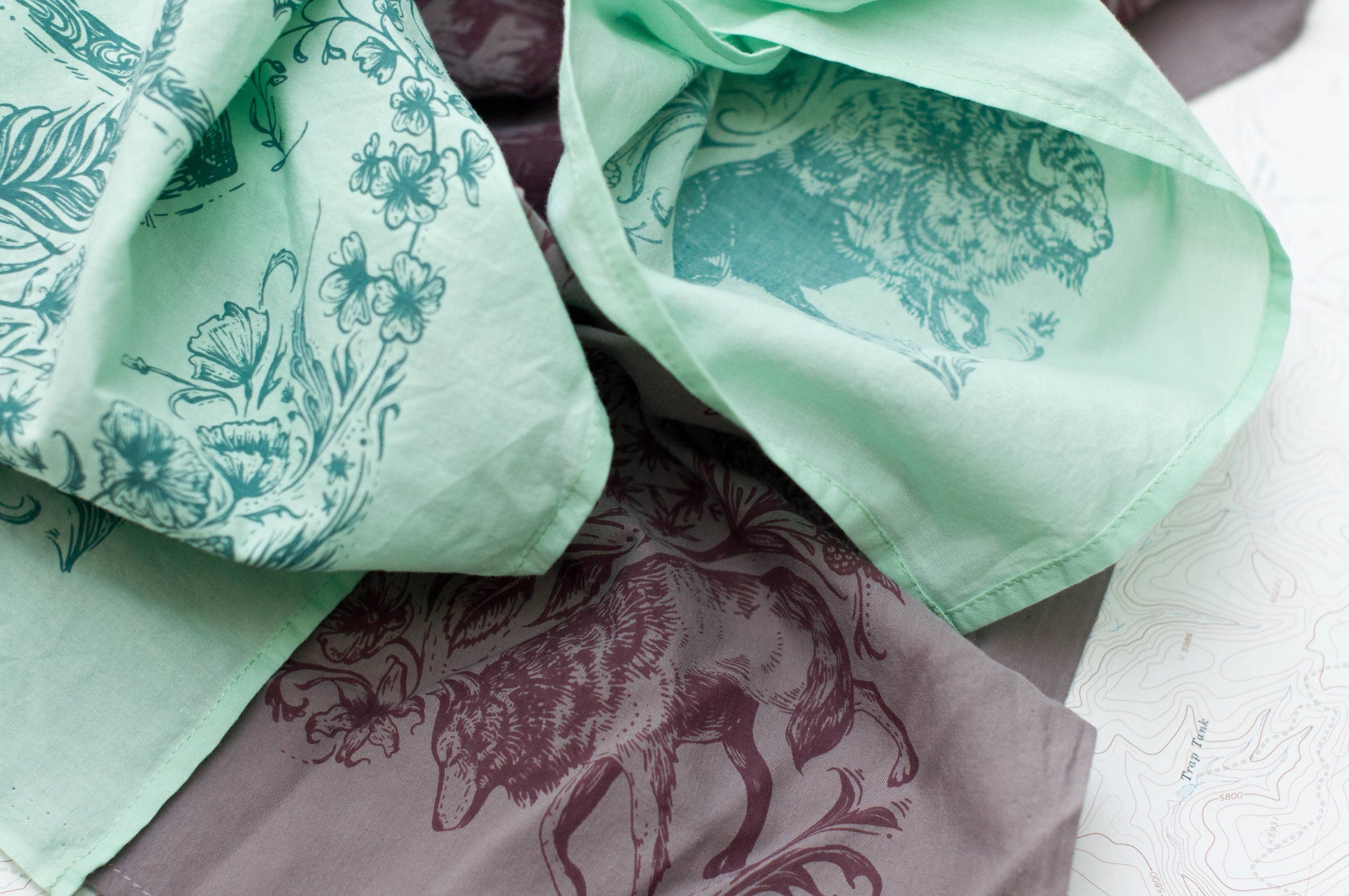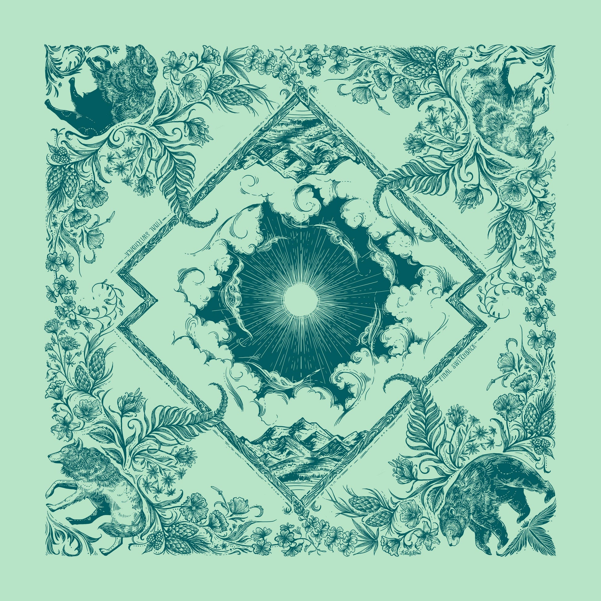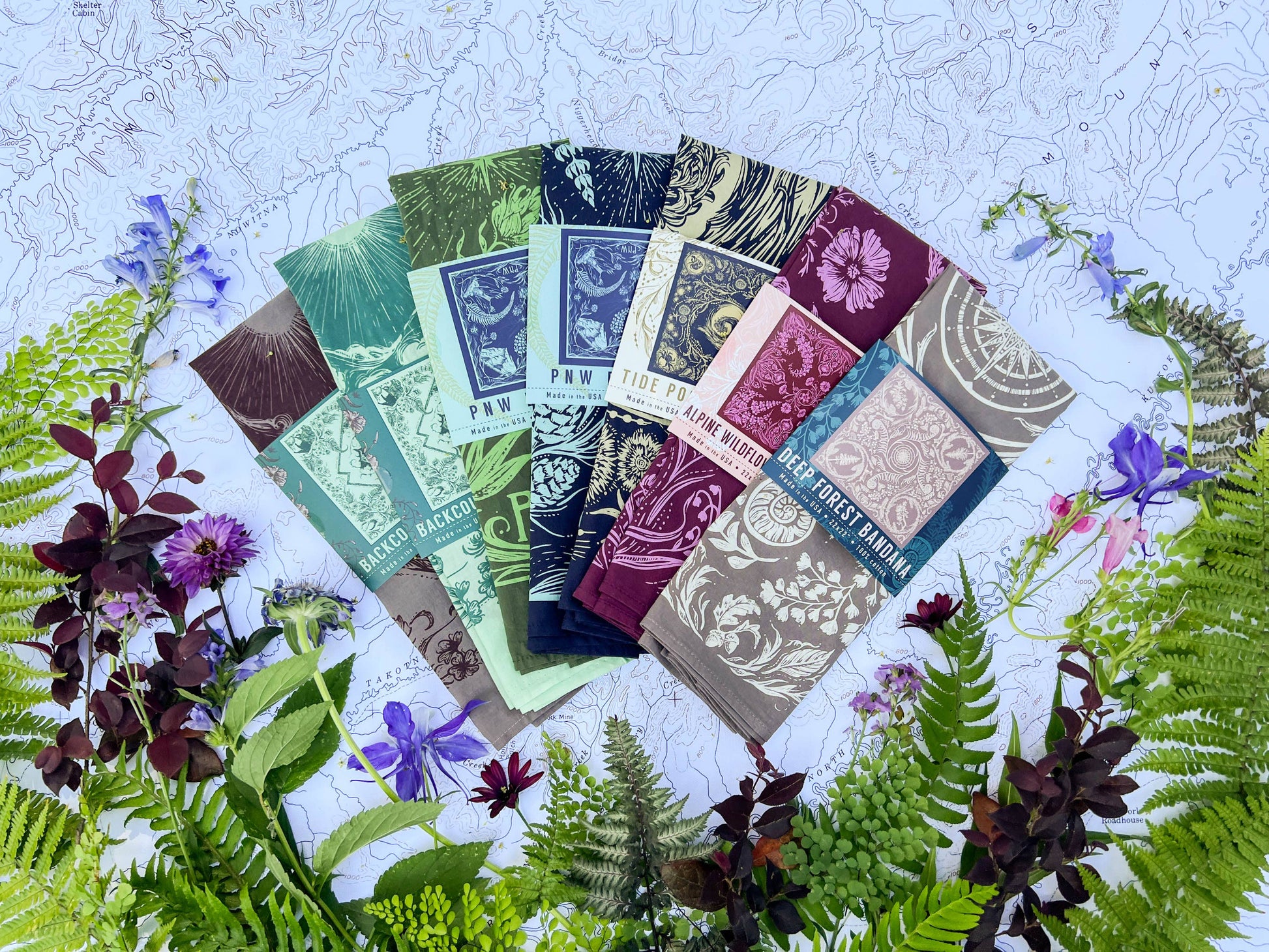 This premium quality, super soft bandana features some of the best of the backcountry; bear, mountain goat, bison, wolf, wildflowers, and mountains. Perfect for outdoor and mountain retailers, hikers, backpackers and mountain bikers.