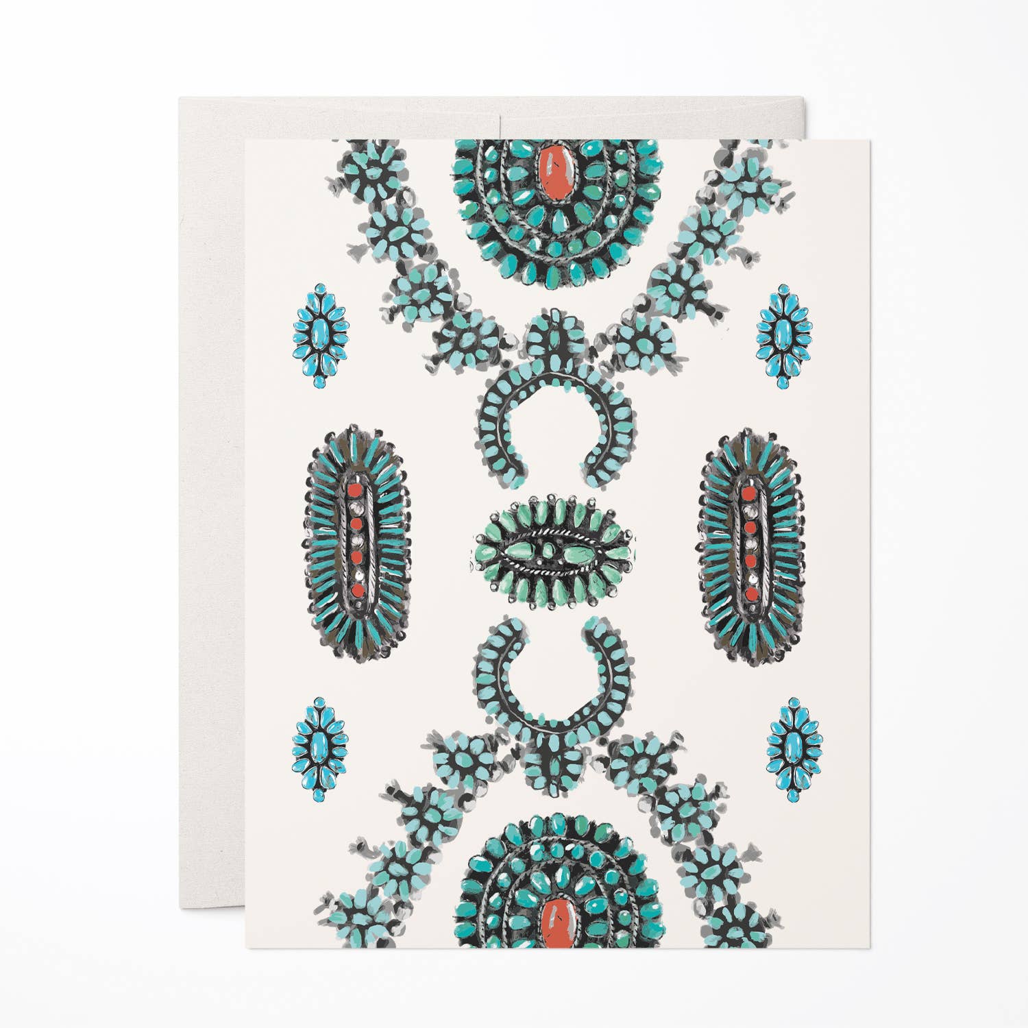 This blank greeting card featuring turquoise jewelry gives this card a southwestern vibe. No need to look for the perfect saying this card is for every situation, this card gives you the power to make it whatever you need.