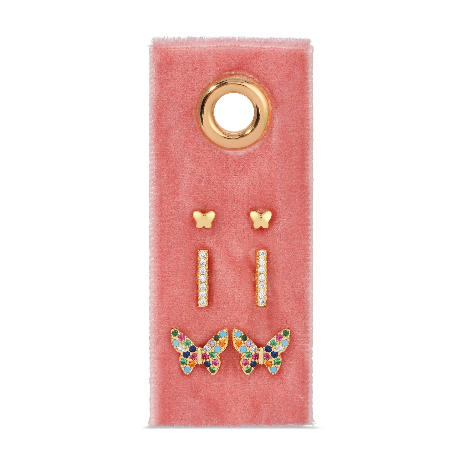 Velvet Gift Set - Set/3: tiny butterfly - pave bar - colorful pave butterfly