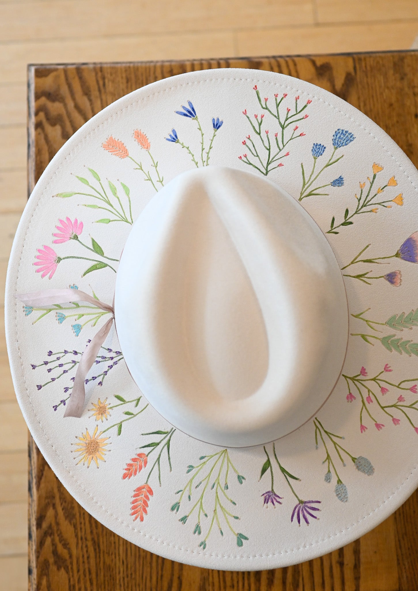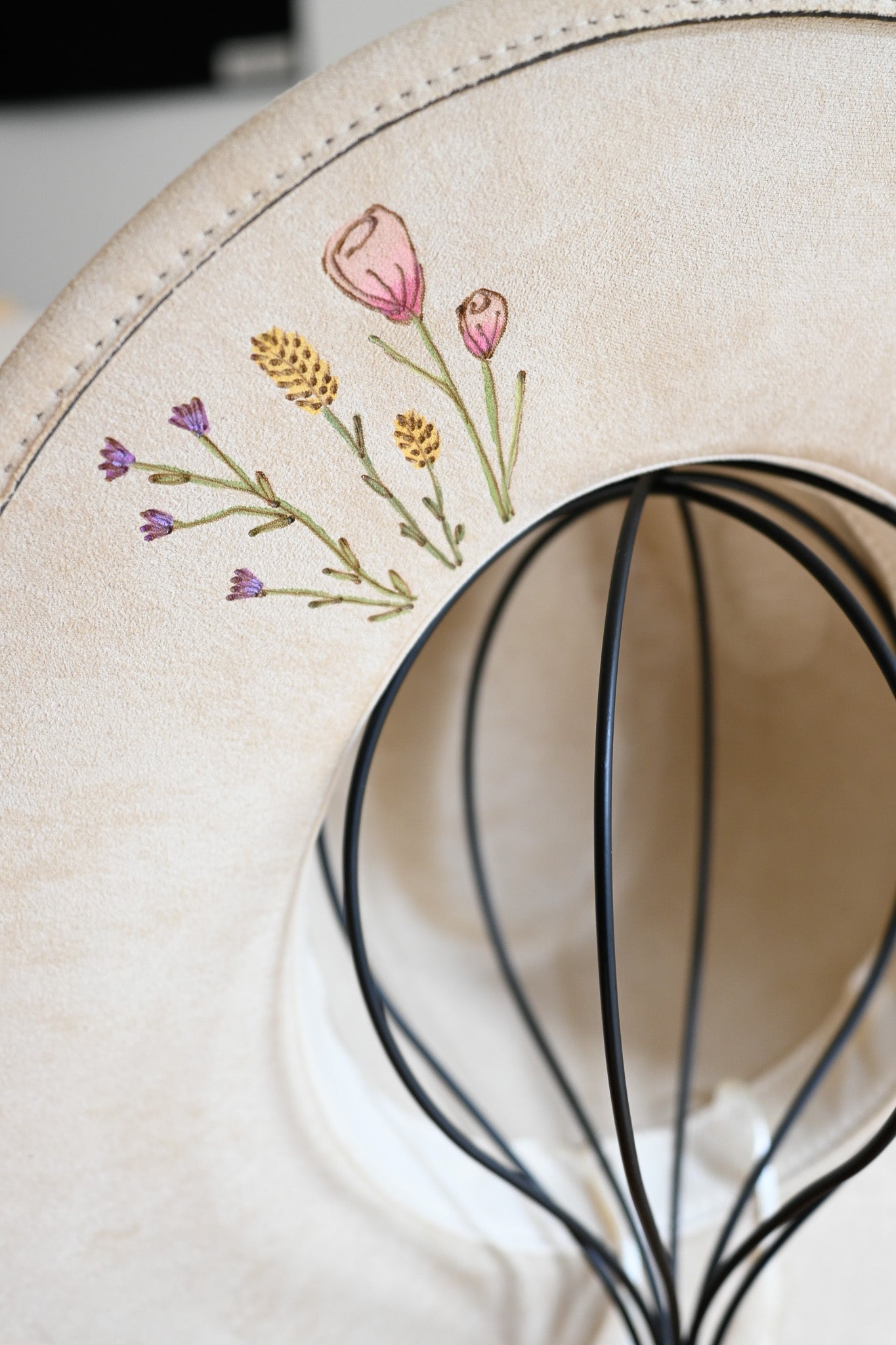 Custom Order Hand-Burned and Painted Wildflower Hat