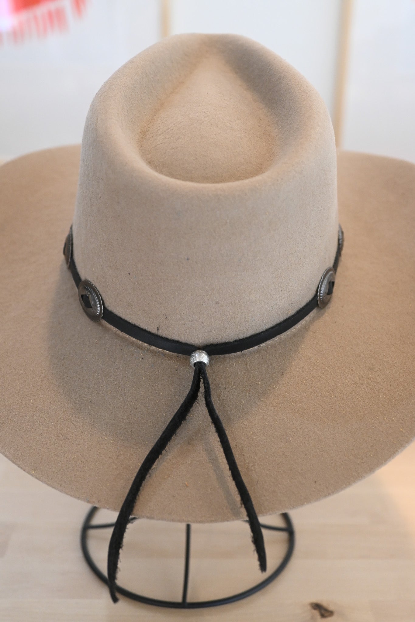 Deerskin Leather Hat Band with Conchos and Bolo Slide