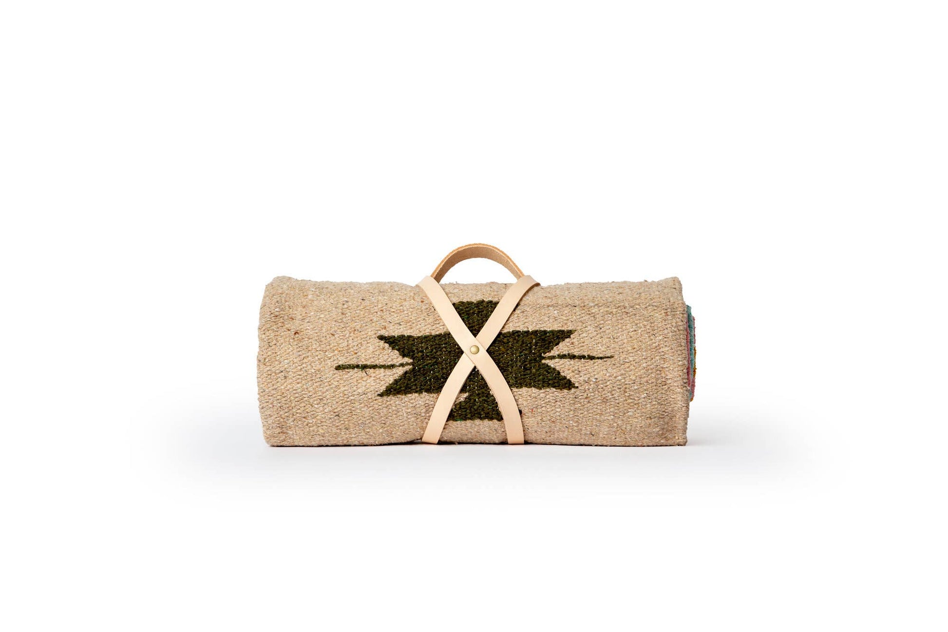 The lively and free Fresca (fresh) colorway embodies the beginning of spring with its peachy pink, fresh mint, and warm gold tones. They are big enough for a 2 - 4 person picnic and roll up in thirds for easy transport. Our original blanket designs are created by in the Bay Area and hand woven in Mexico by skilled artisans. Our leather straps are hand-made by us out of vegetable-tanned leather that ages nicely with use. Blankets are machine washable on cold gentle cycle, lay flat to dry. Dimensions: Unfolded: 83" x 51" Rolled: ~ 16.5" x 6.5"