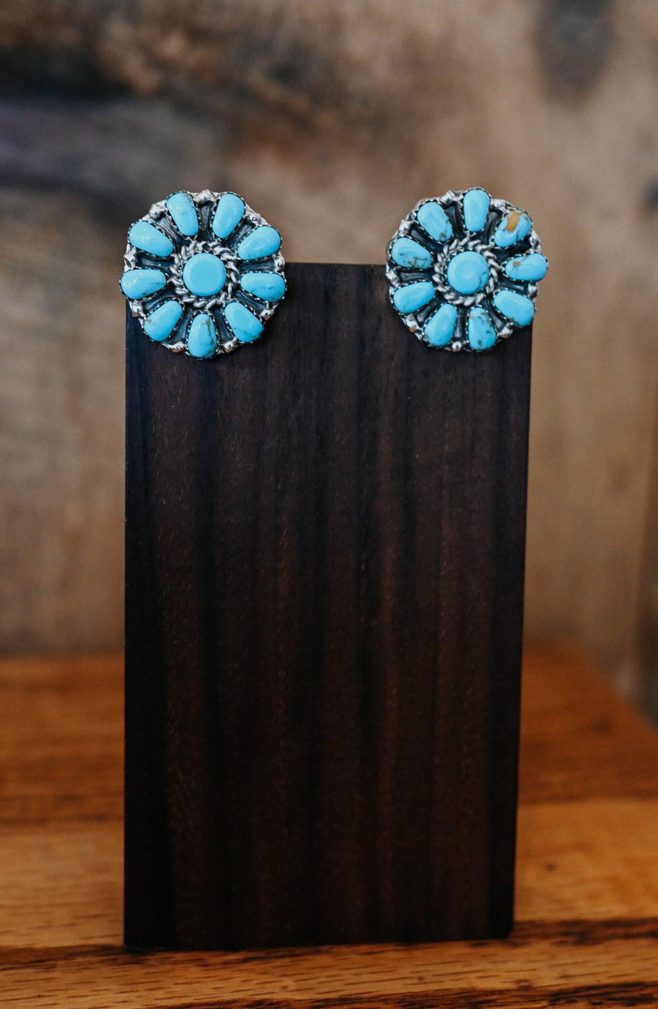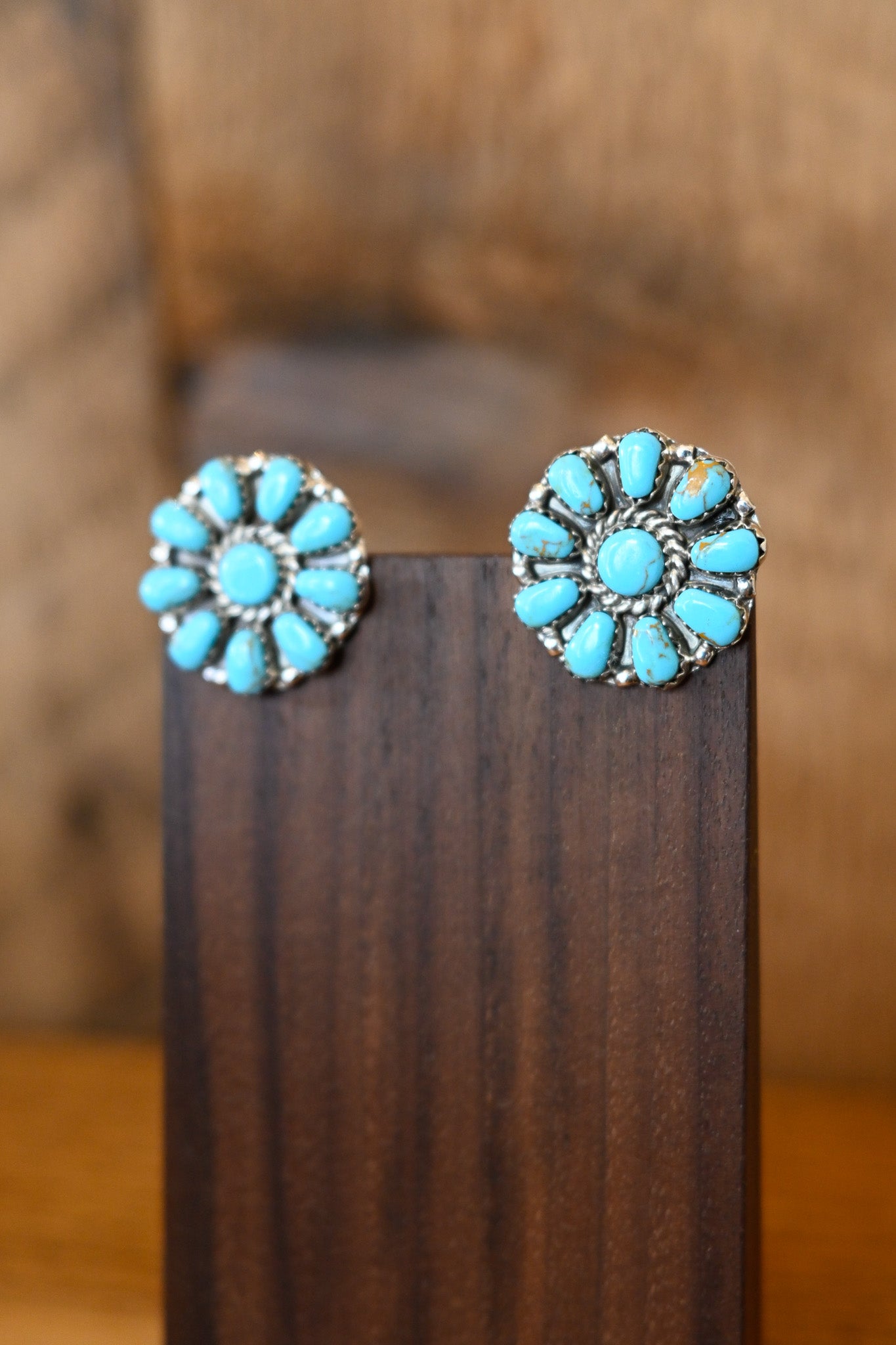 Juliana Benally Navajo Handmade Sterling Silver Turquoise Circle Studs Earrings