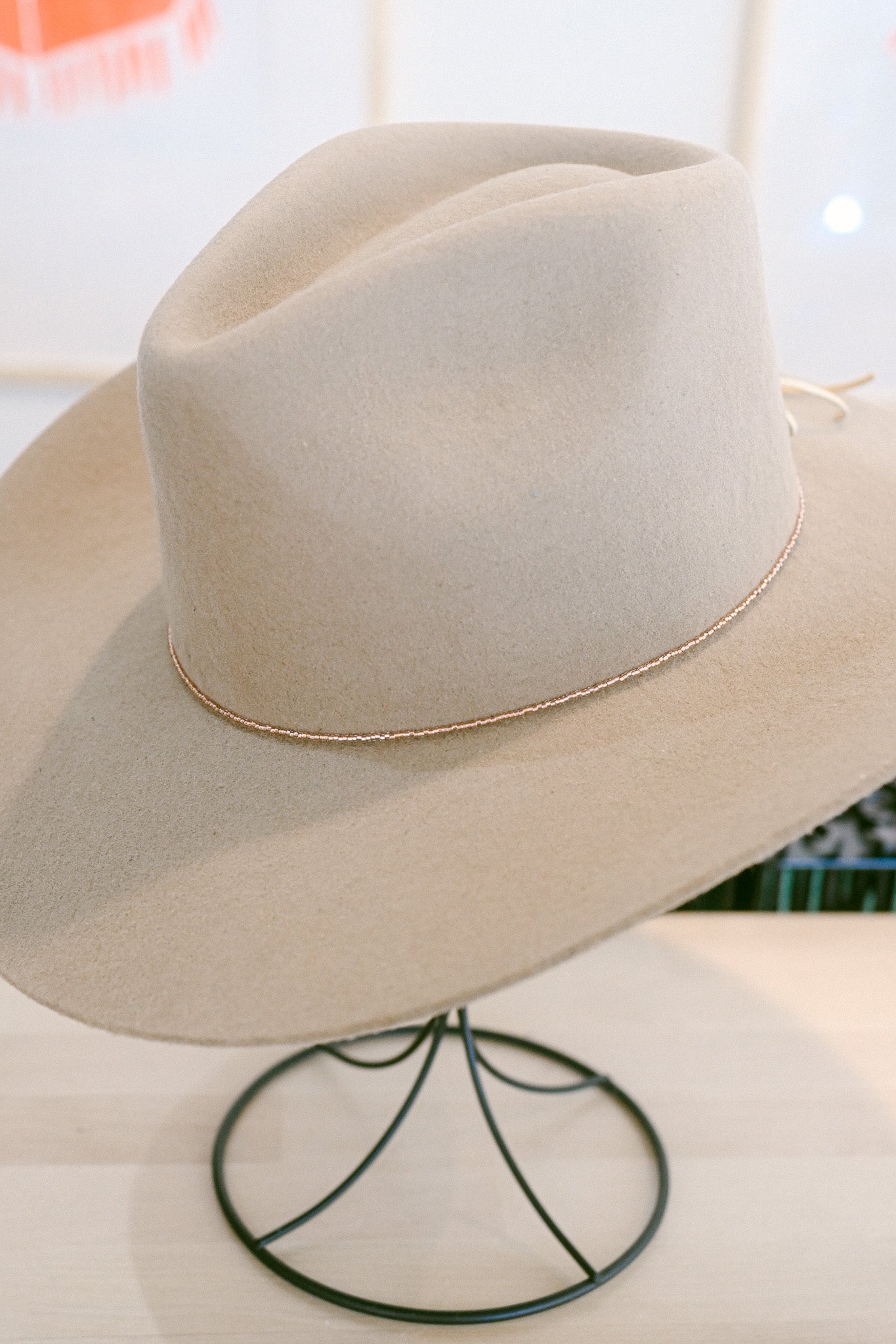 This simple and striking beaded hat band of made of genuine Miyuki Delica seed beads is the perfect touch to any hat. With deerskin leather ties on each end and lightweight metallic beads, these hat bands work with any size hat and are easy to add, remove, and layer for interchangeable bands. Hand-beaded with care in house at The Mercantile Ouray. We suggest layering one or two over ribbons for a look that really makes the metallic pop!