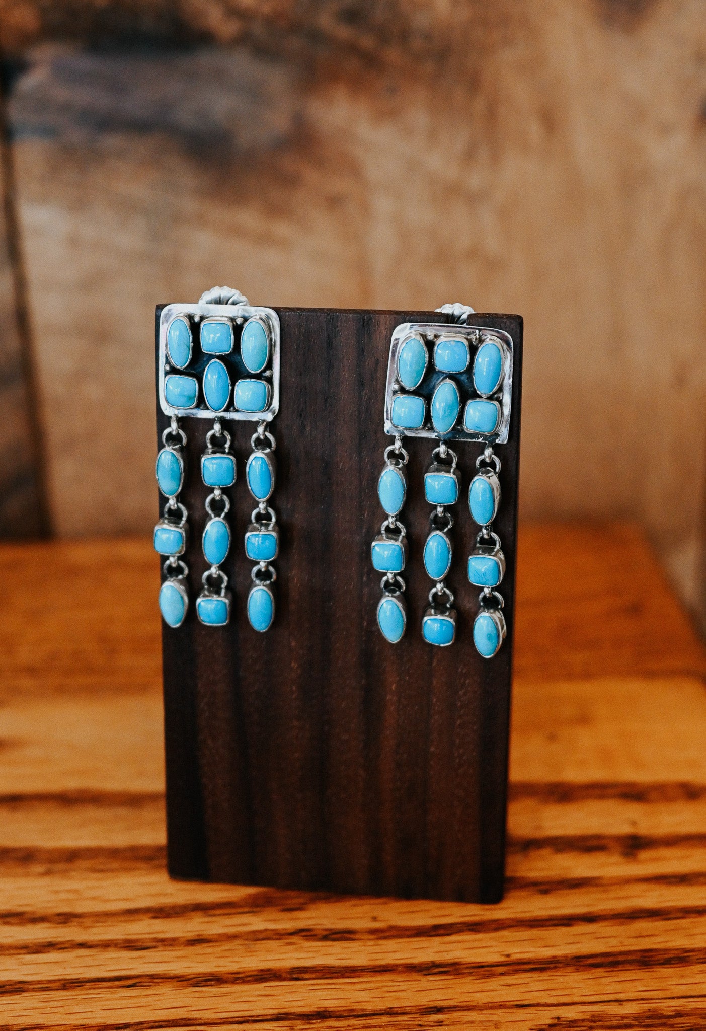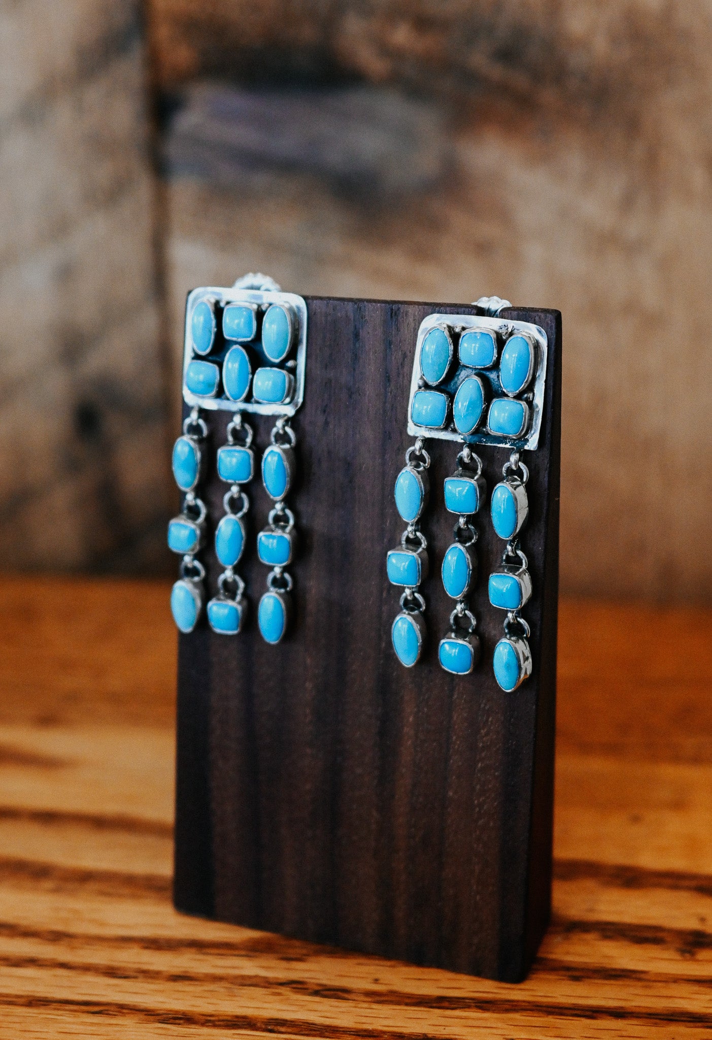 Navajo Handmade Turquoise Sterling Silver Rain Chandelier Earrings