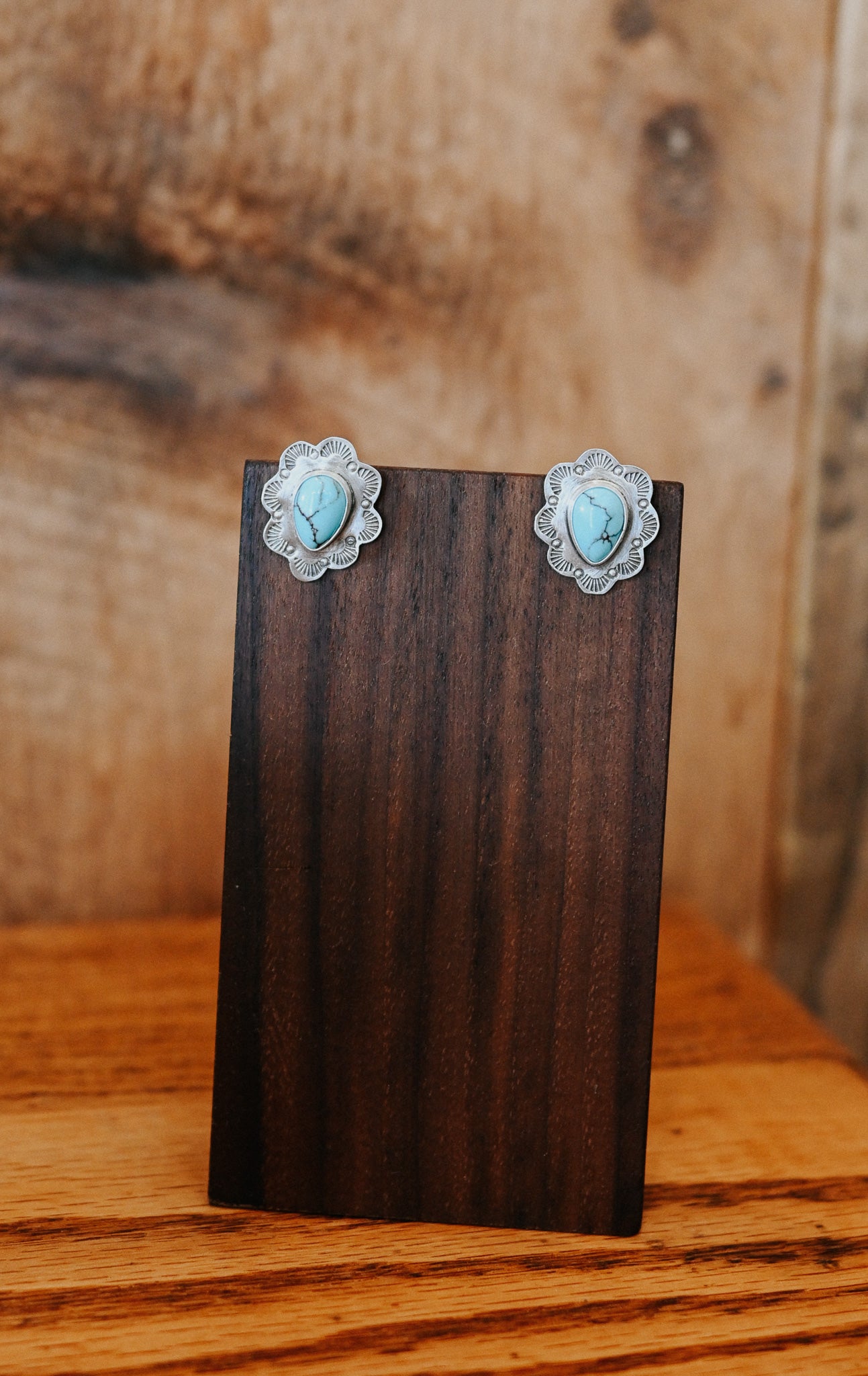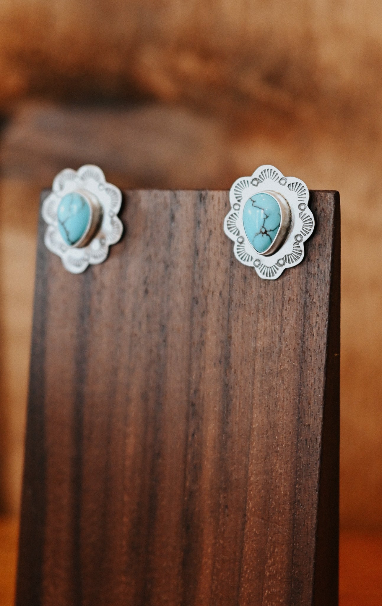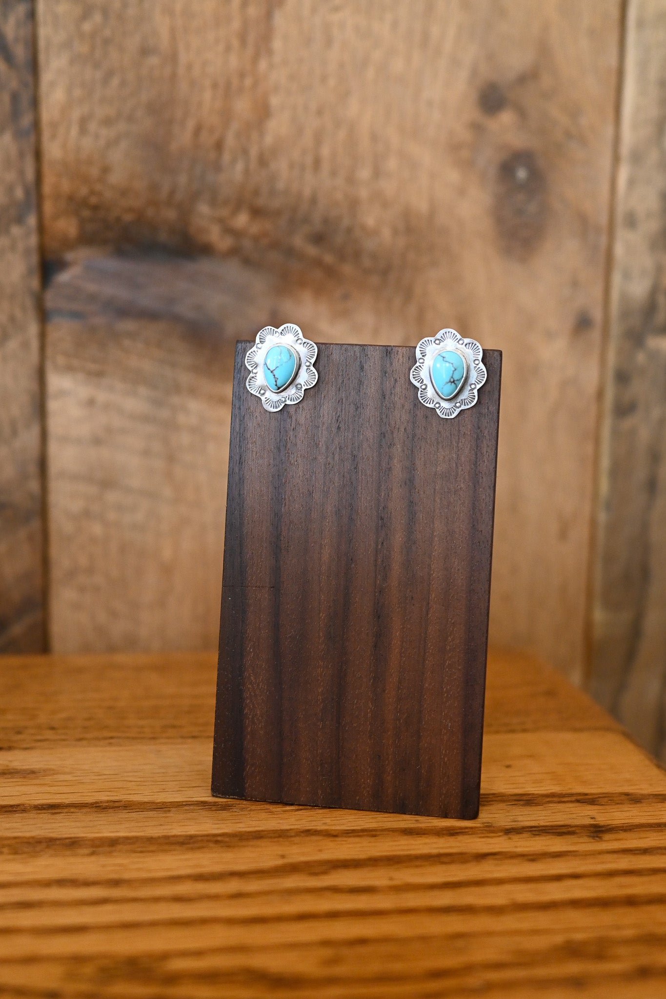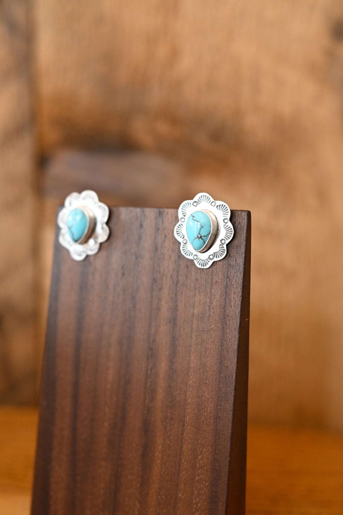 Navajo Handmade Turquoise Sterling Silver Small Scalloped Studs