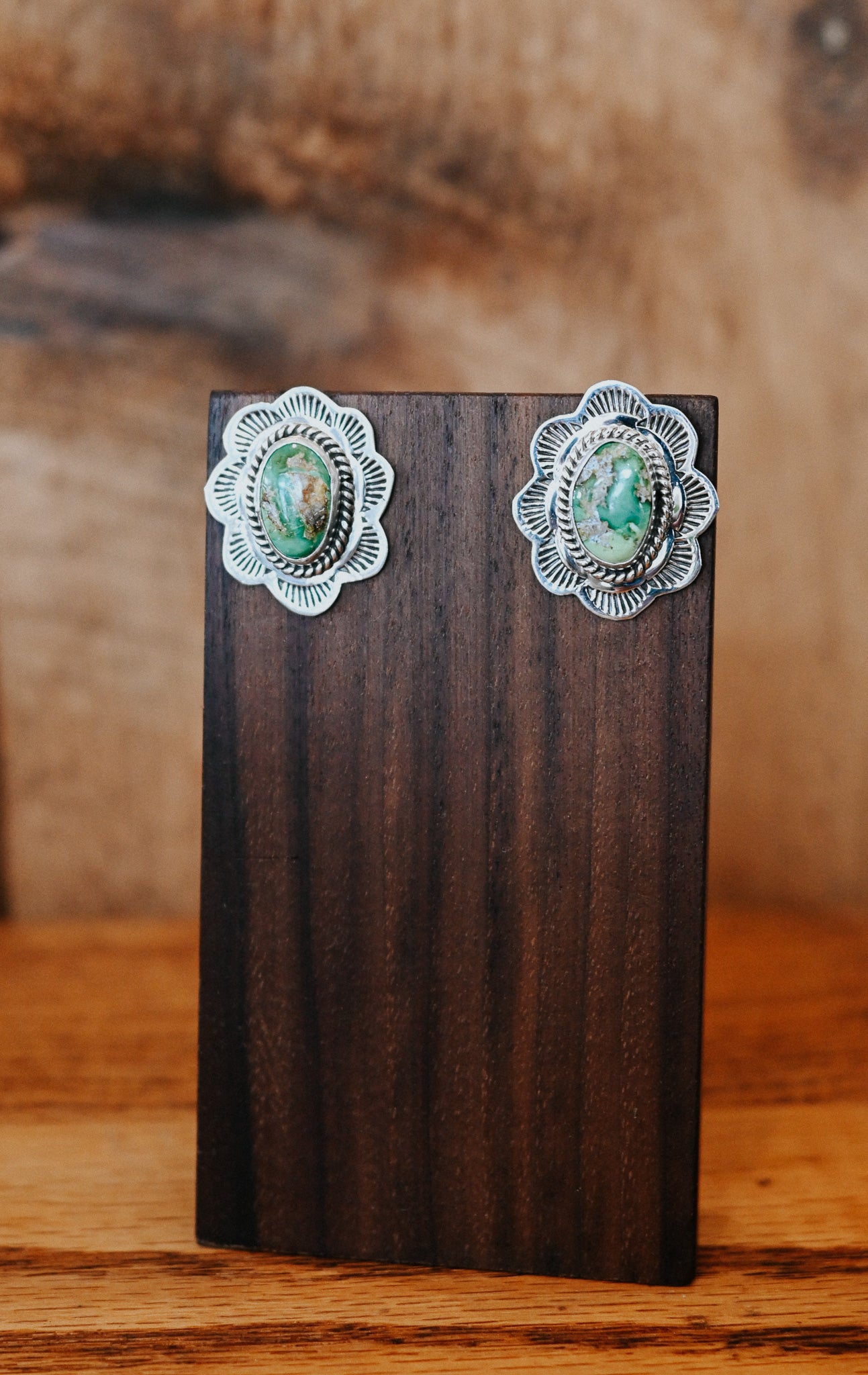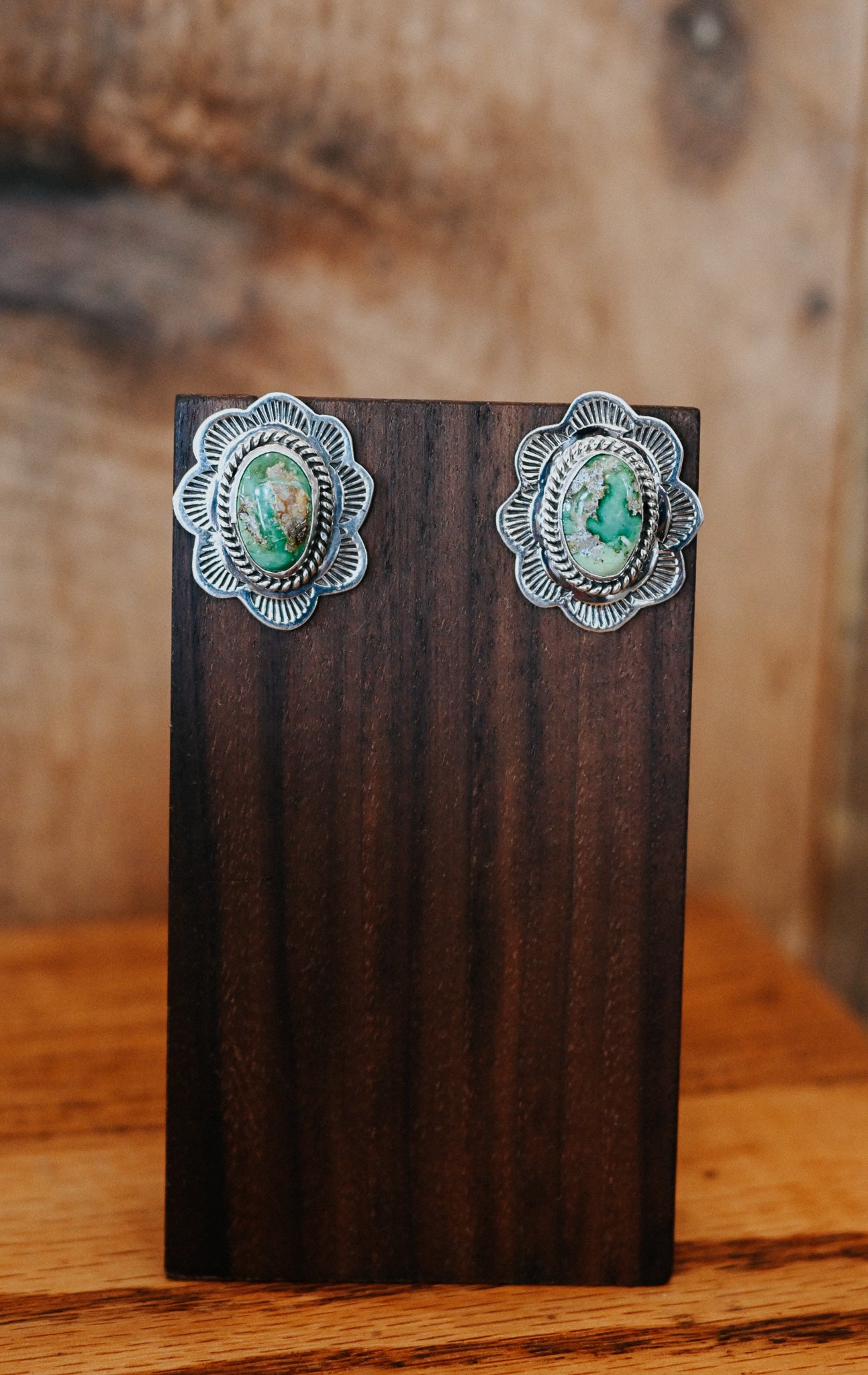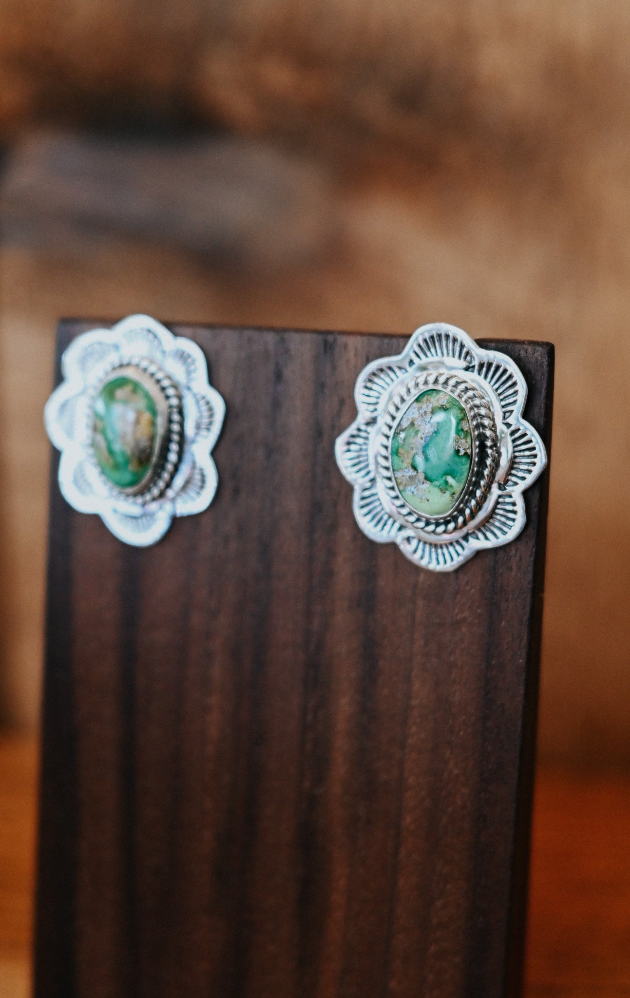 Navajo Handmade Turquoise Sterling Silver Scalloped Medium Studs