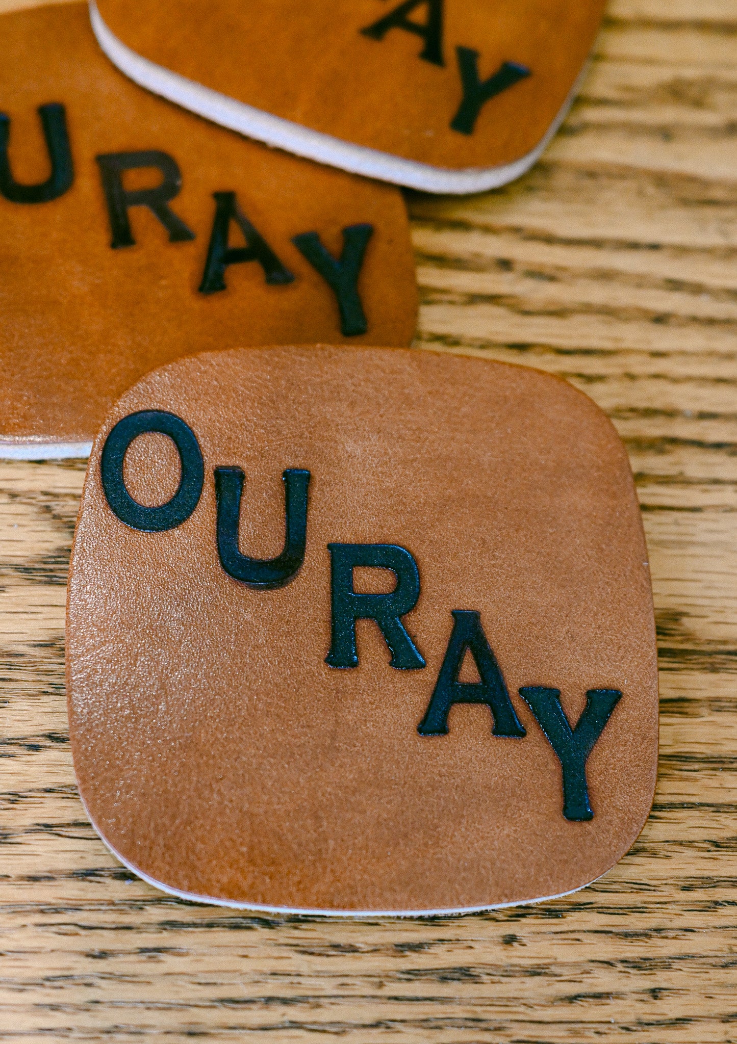 Hand-branded in store! Premium leather coaster with OURAY iron branded on the front, for the perfect souvenir.