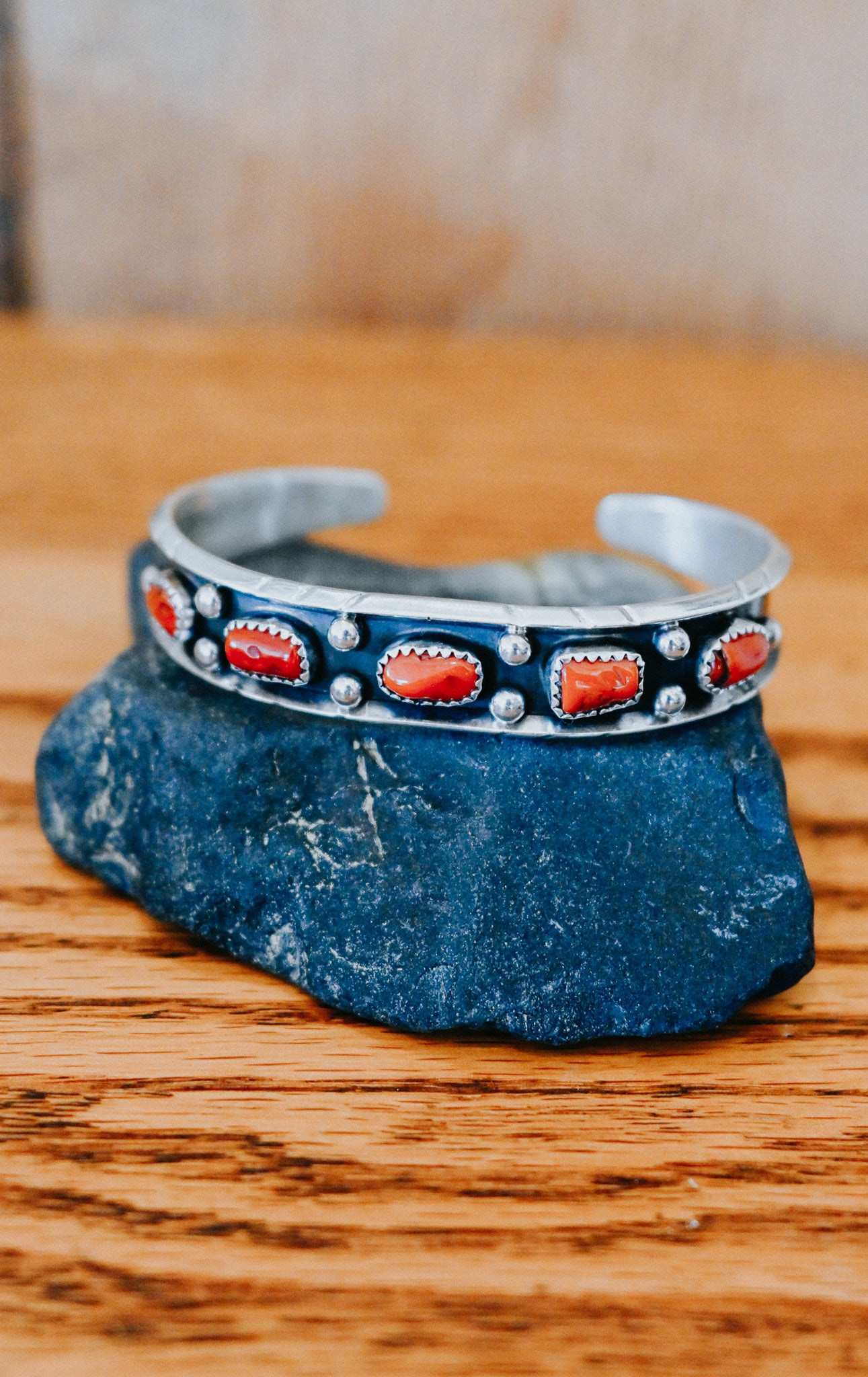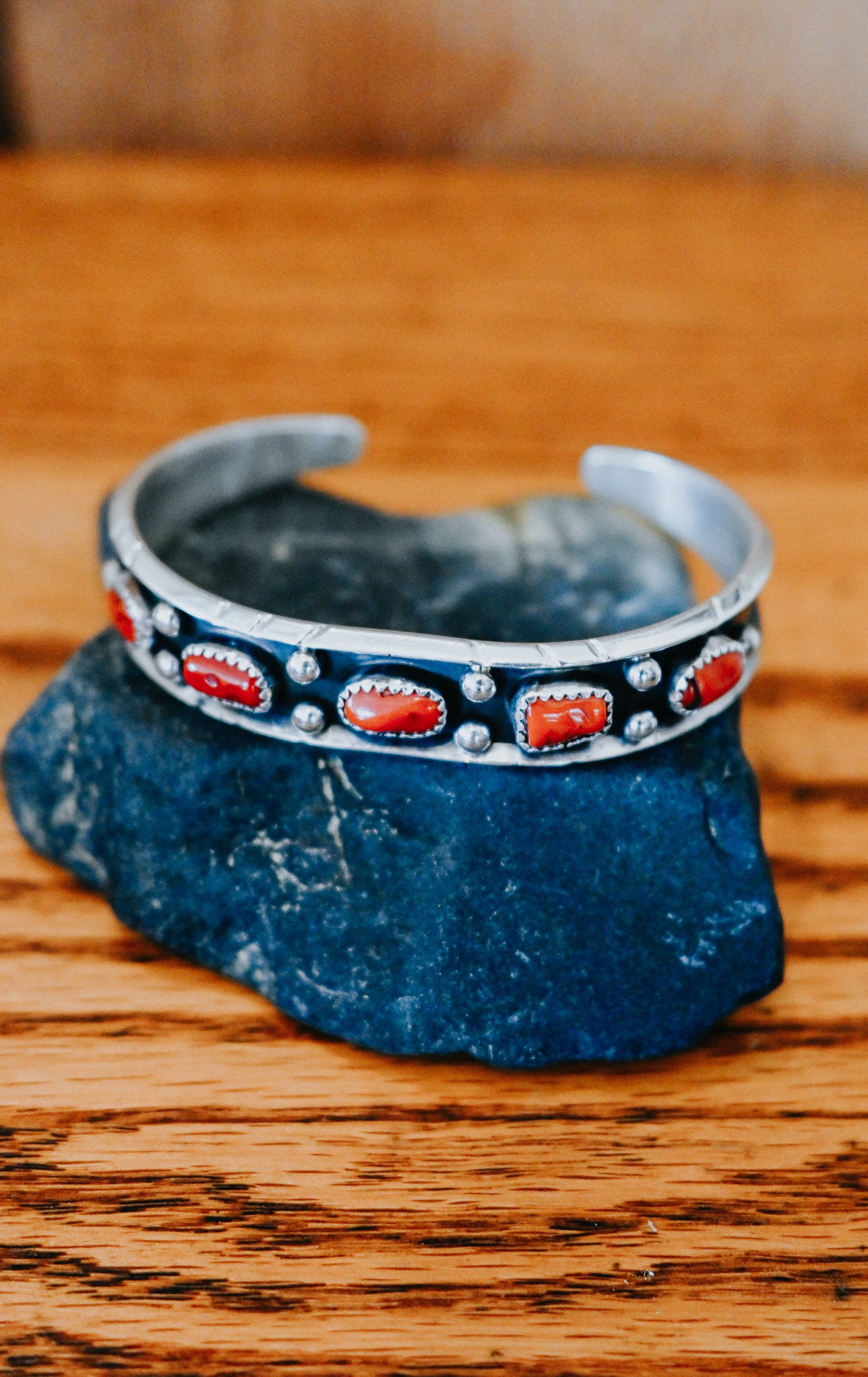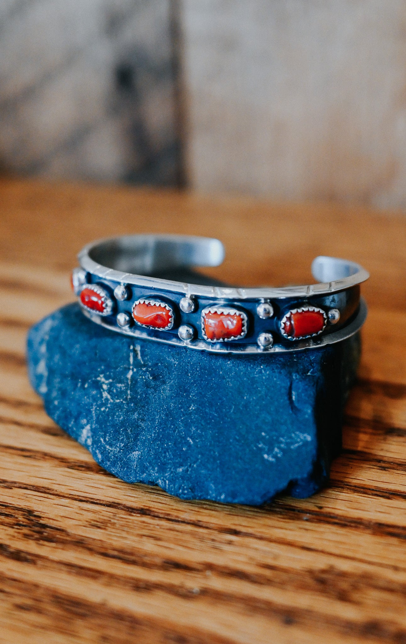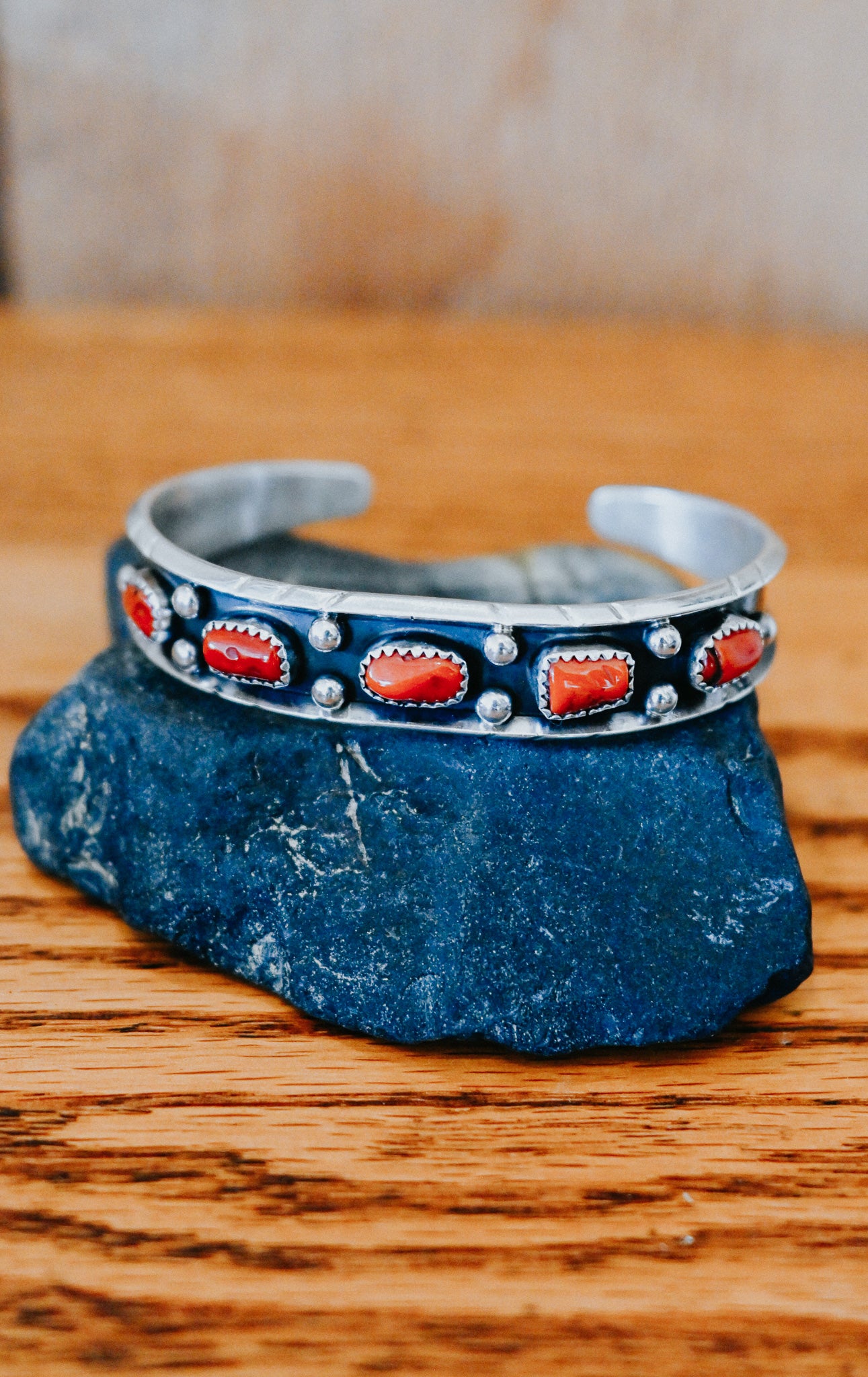 Reed Charley Navajo Handmade Sterling Silver Red Coral Bracelet