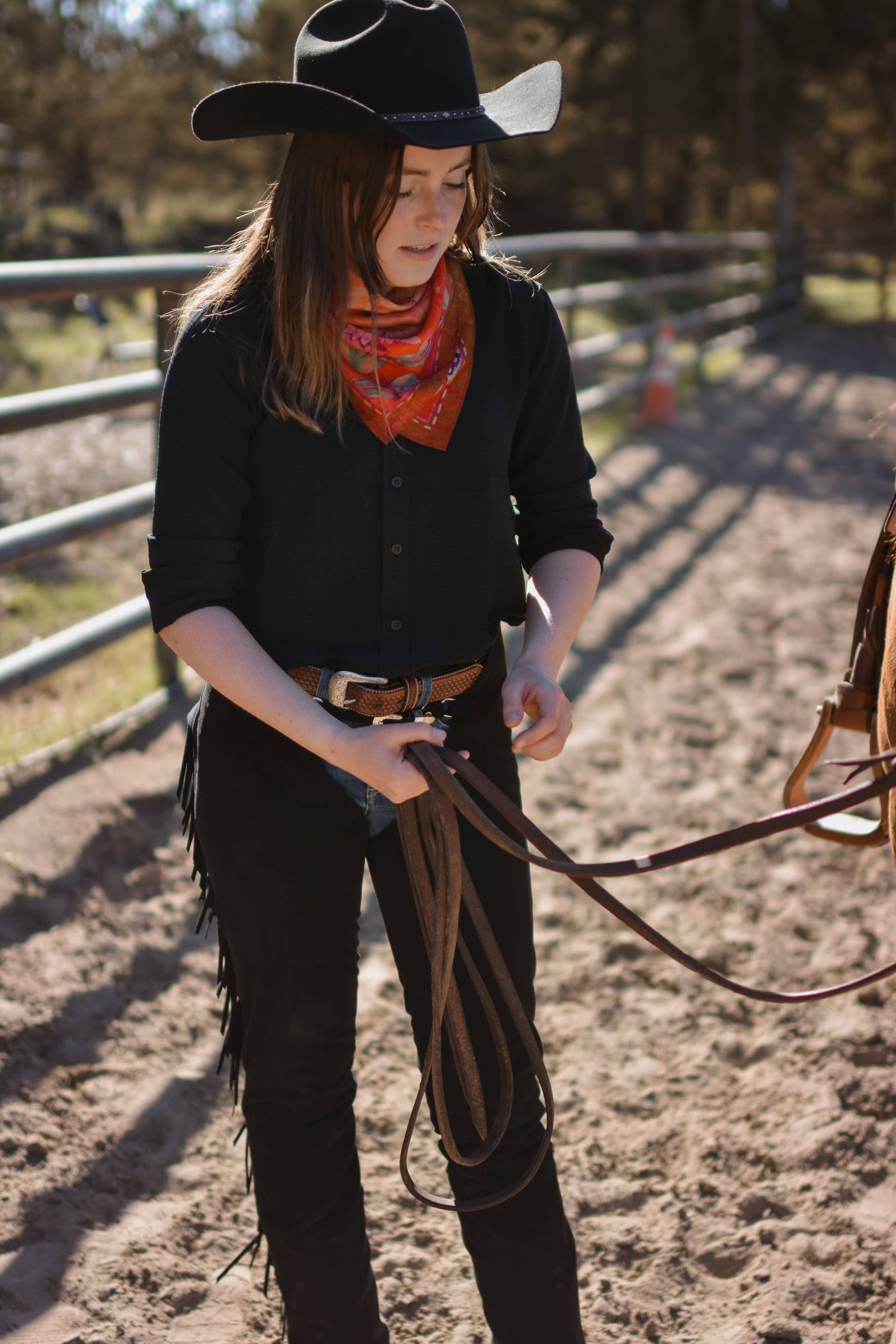 Inspired by western heritage and designed in Oregon, this western silk scarf blends wild west spirit with effortless style. Made from a soft and luxurious silk and tencel blend, it’s ultra-vibrant, lightweight, and flowy — the perfect cowgirl accessory for year-round wear. Tie it around your neck, in your hair, or on your bag for a pop of western charm.