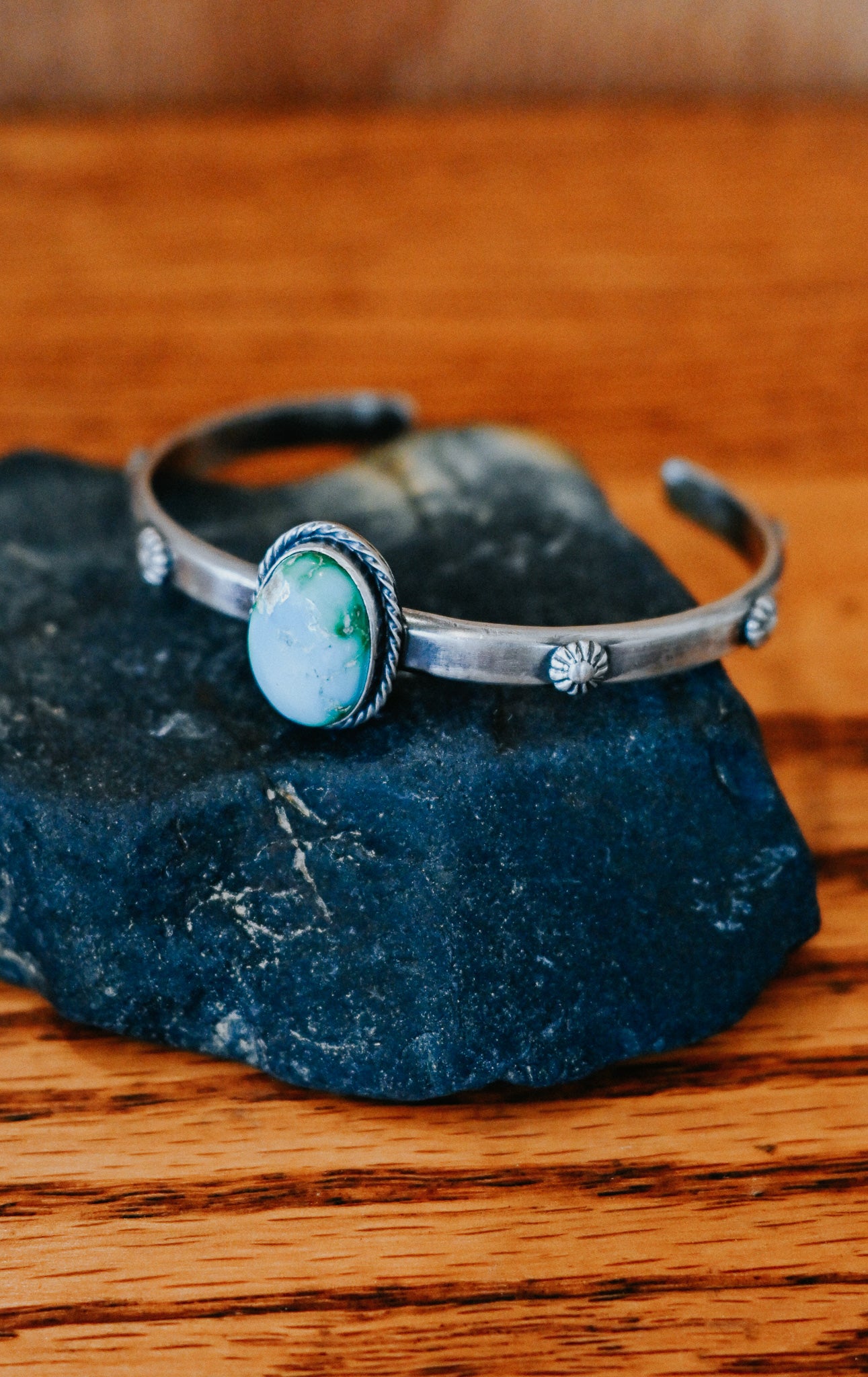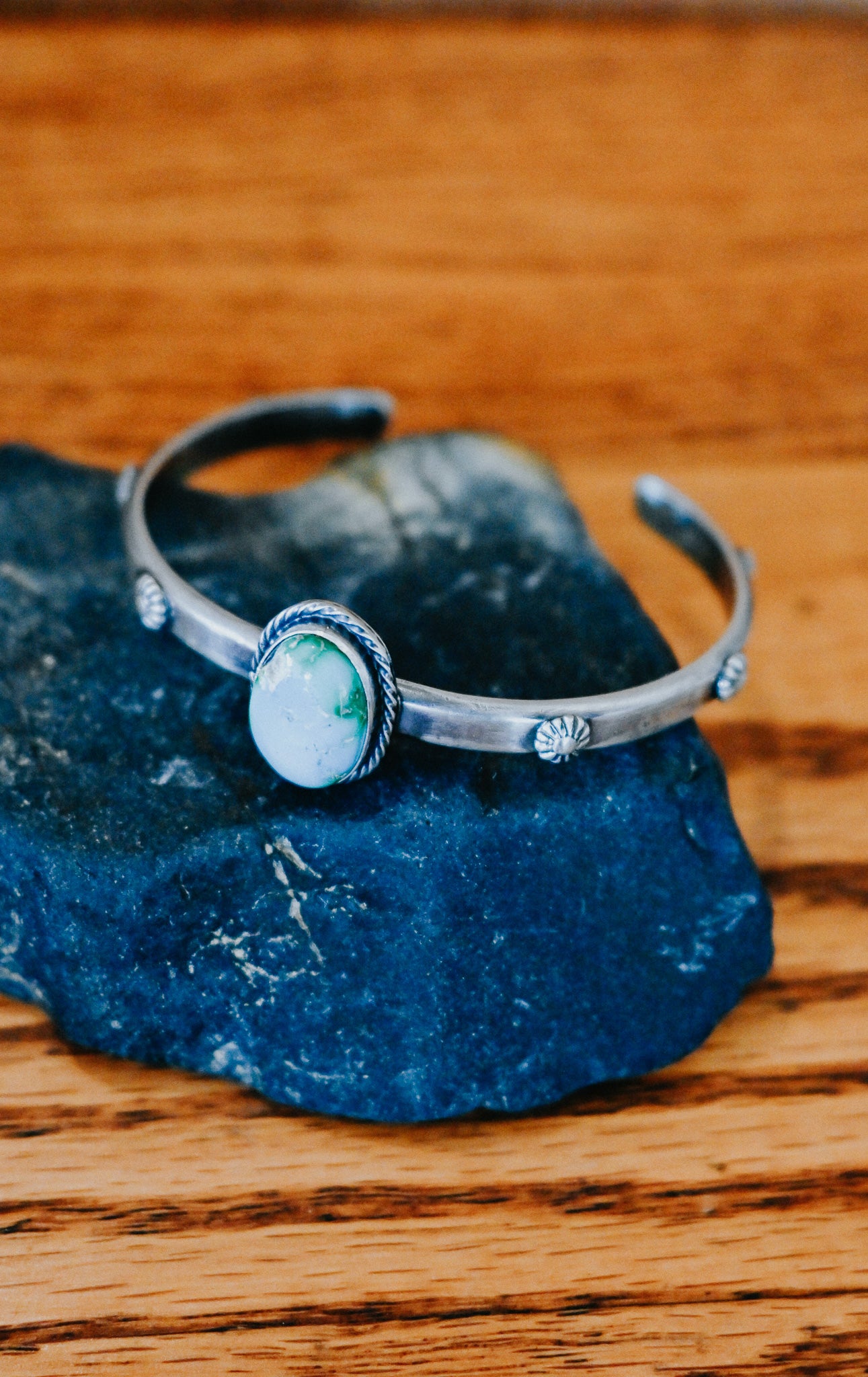 Samuel Yellowhorse Navajo Handmade Sonoran Gold Large Turquoise Oval Bracelet