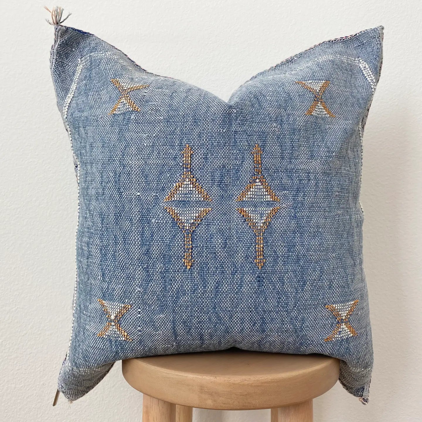 These Sabra's are all one of a kind, meaning that the pillow shipped will be brown but the color and designs will all vary. The silk is a natural fiber from the Agave Cactus Plant (100% vegan). Embroidery is hand stitched Dimensions: range from 18"x18-20"x20" 20" x 20". Due to the handmade and vintage nature of this fabric, each pillow may have slight variations in color, spots and marks which adds to the vintage charm and makes each pillow unique.