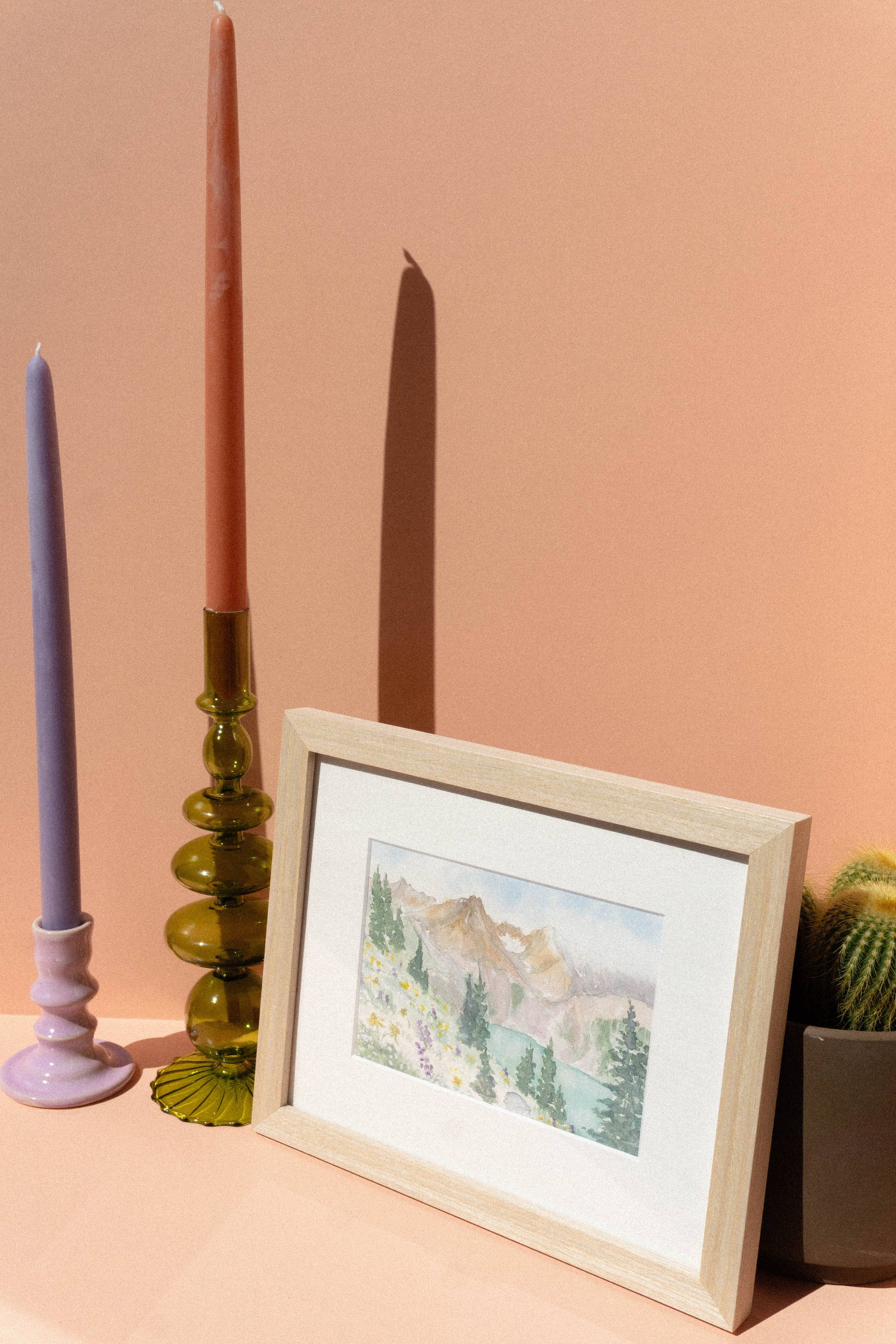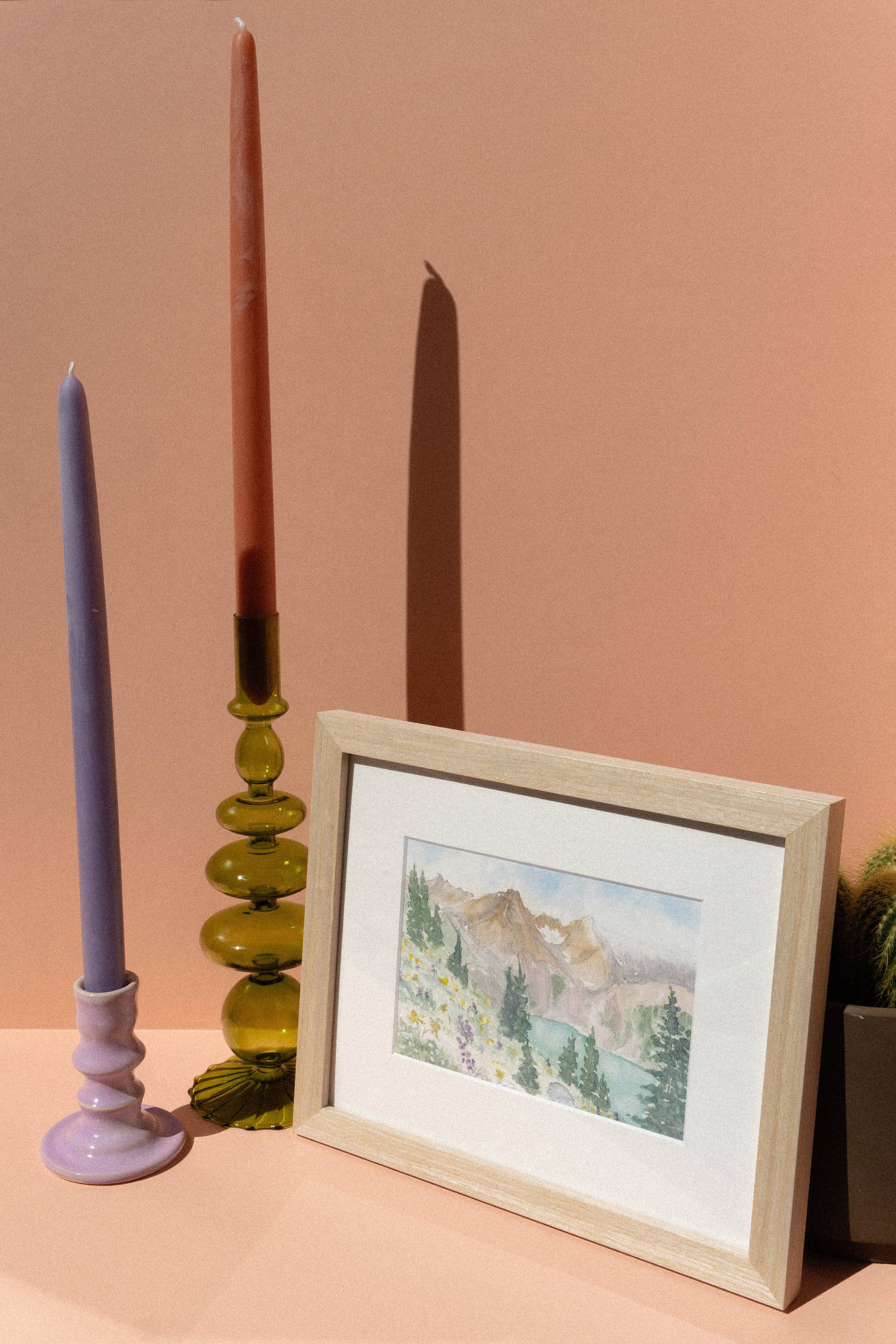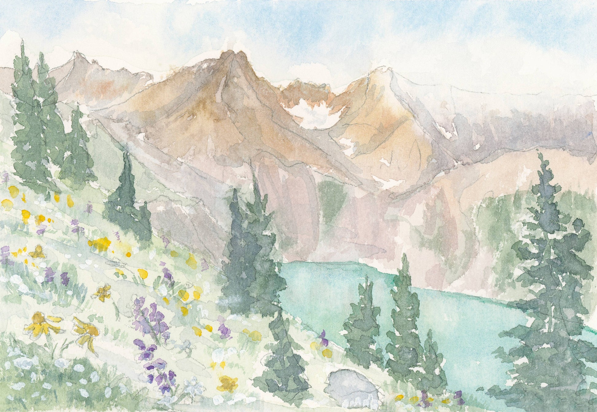 “Blue Lakes” — Fine Art Print by Mel K. Olrich Art, Inspired by a stunning alpine lake found in the San Juan Mountains of Southwest Colorado in the summertime when the wildflowers are blooming. PRINT DETAILS: - All prints are made start to finish in the artist's studio in Durango, Colorado - Each print is stamped with the artist's signature on the back with the title written below, then packaged in a glassine sleeve and sturdy backing board. Info about the artist and how to properly care for the print is included. - Frame and mat are NOT included. - My prints are produced with pigment based inks and archival fine art paper to maintain the look and feel of the original piece for 100+ years. - The cropping of the final print may vary due to different size options and ratios. Colors visible on your screen could be slightly different than the actual print depending on the hue of the device SIZE & MATERIALS: 8×10” with 1/4" white border included in overall dimensions on premium velvet paper