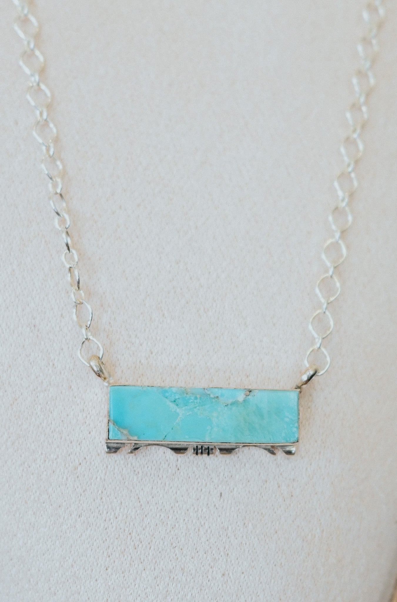 Navajo Handmade Sterling Silver Kingman Turquoise Necklace by artist Steve Francisco. Approximately 9.25" long.