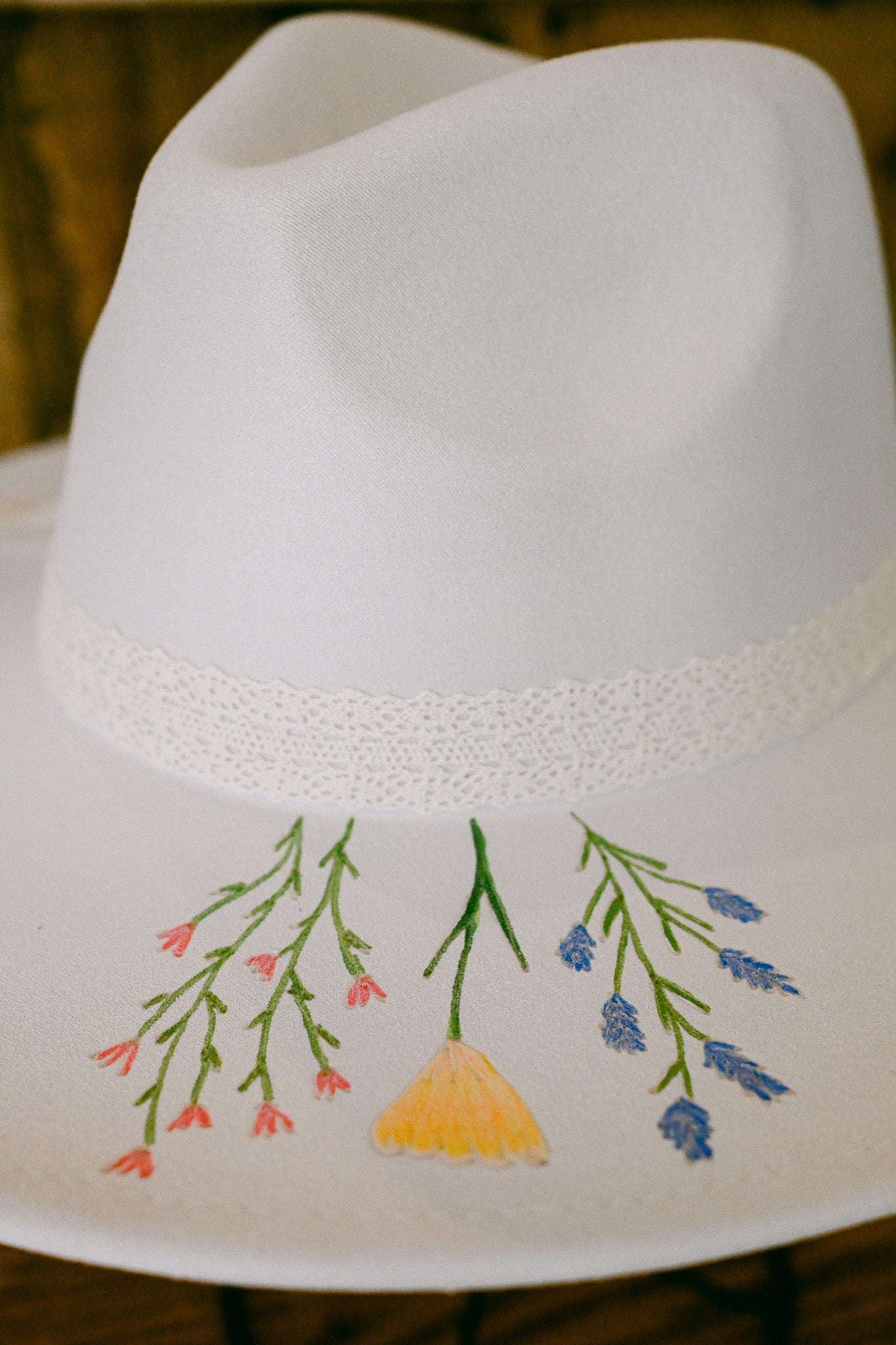 Each hand-burned wildflower hat is completely unique and one-of-a-kind, and therefore not returnable or exchangeable.