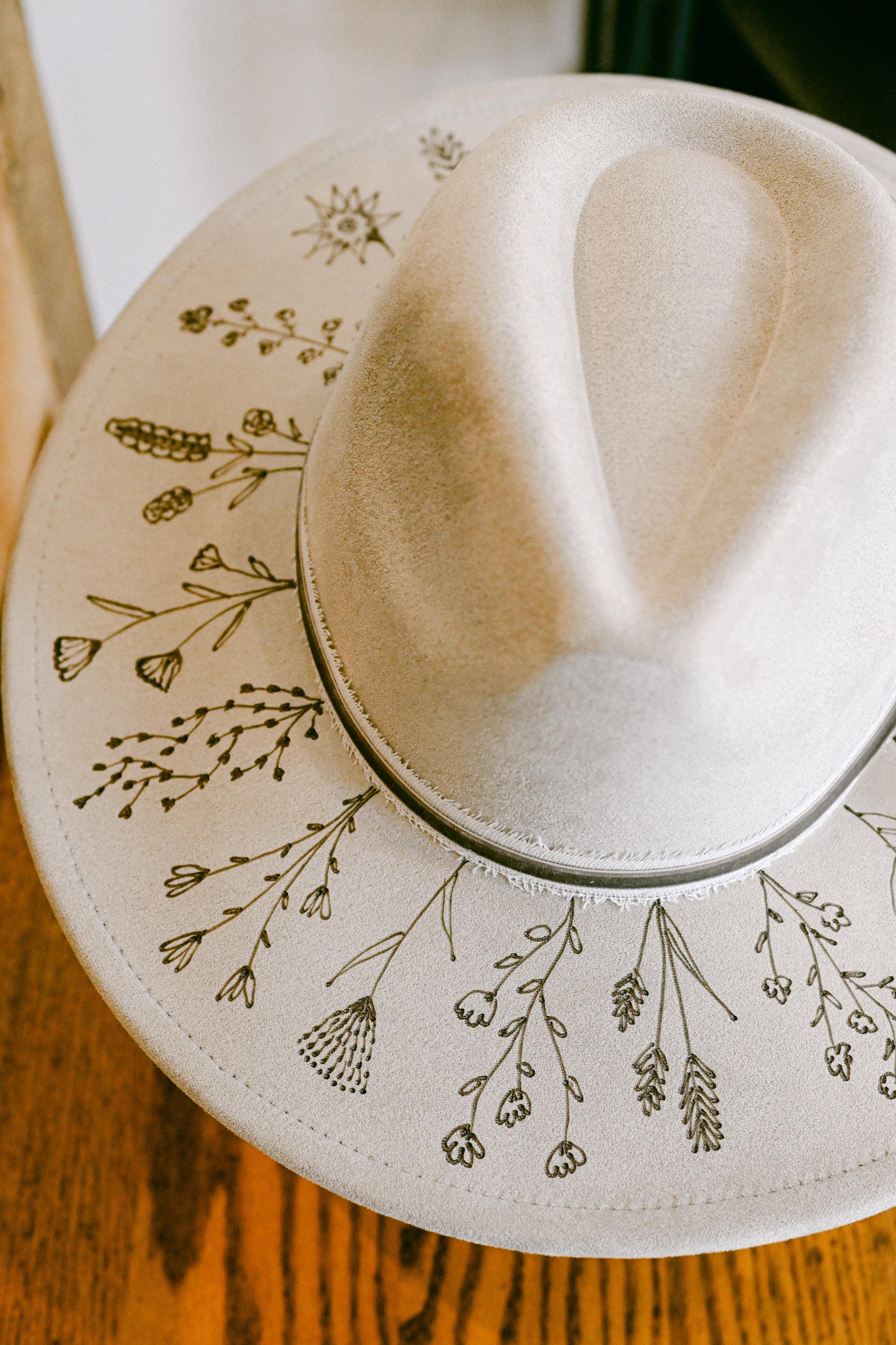 Each hand-burned wildflower hat is completely unique and one-of-a-kind, and therefore not returnable or exchangeable.