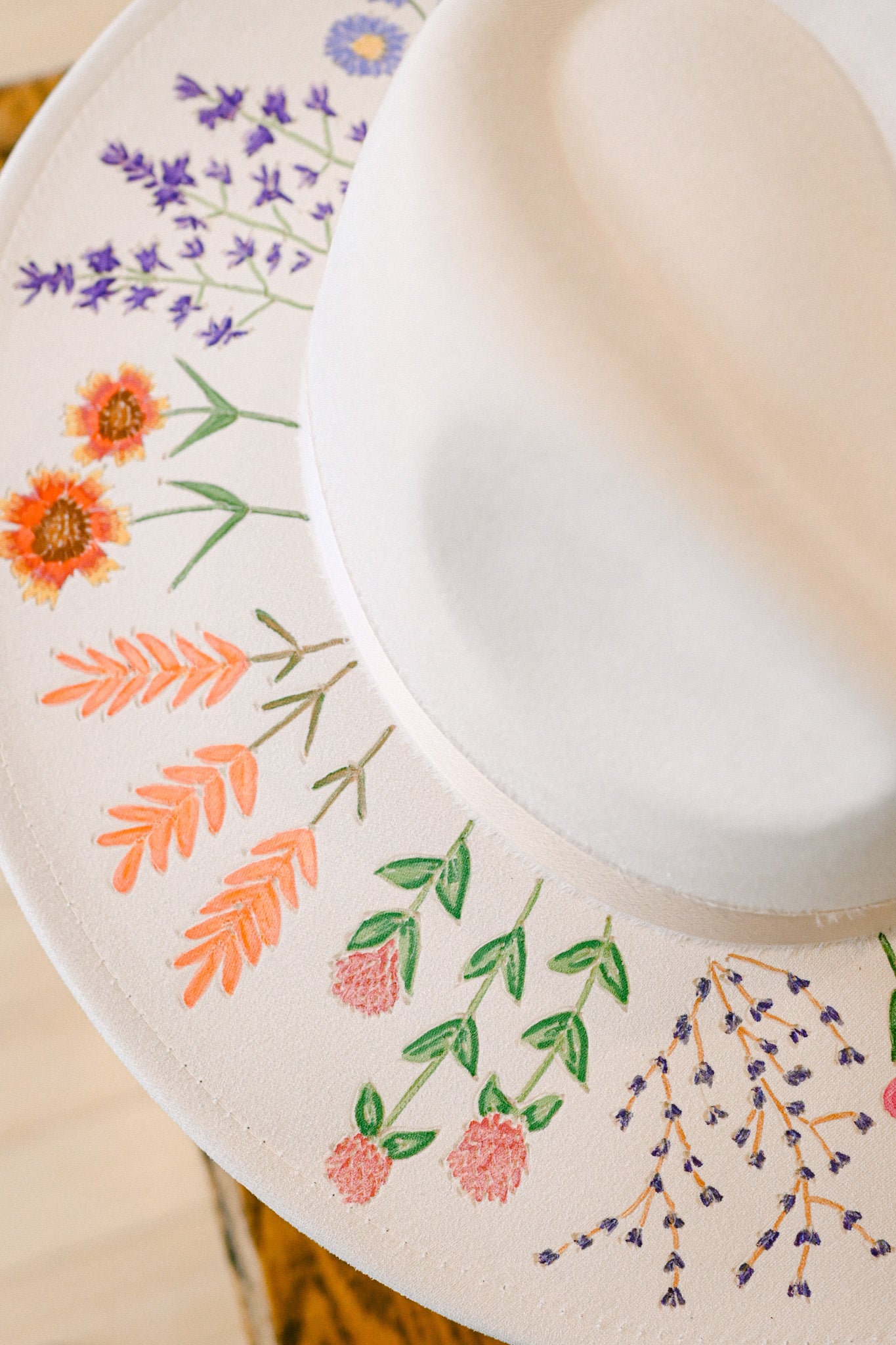 The Cora - Hand-Burned and Hand-Painted Wildflower Hat