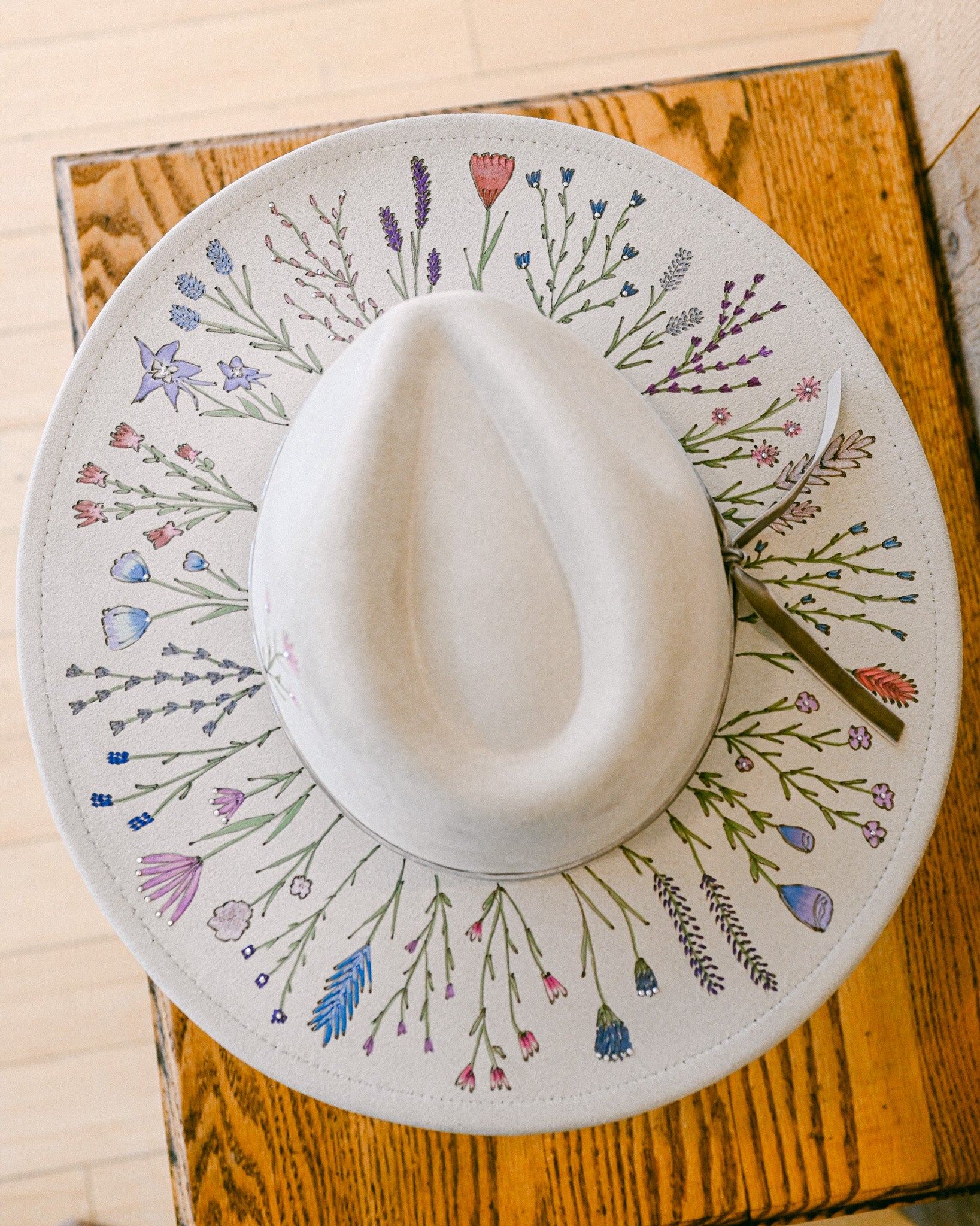The Gemma - Hand-Burned & Hand-Painted Wildflower Hat