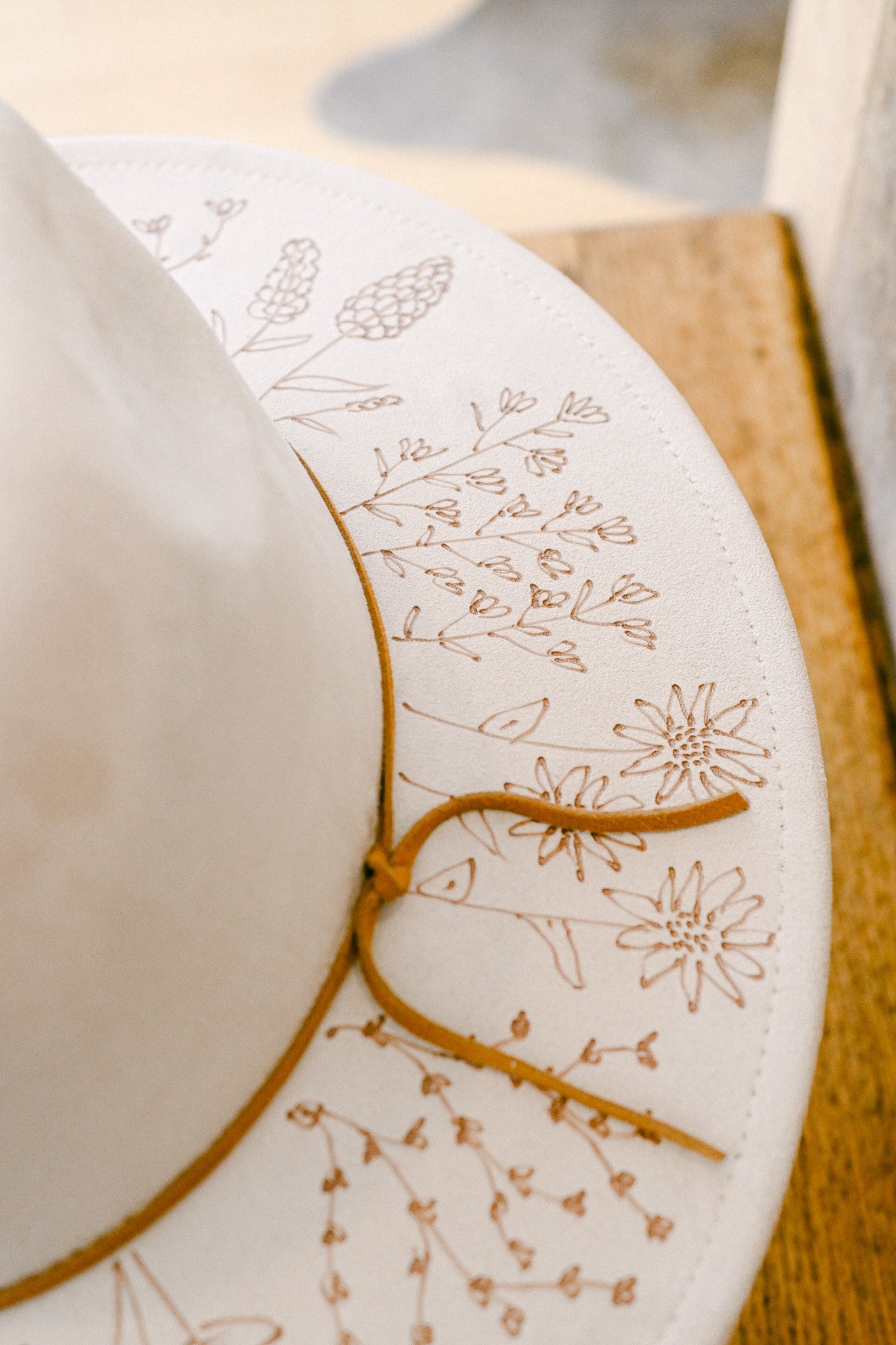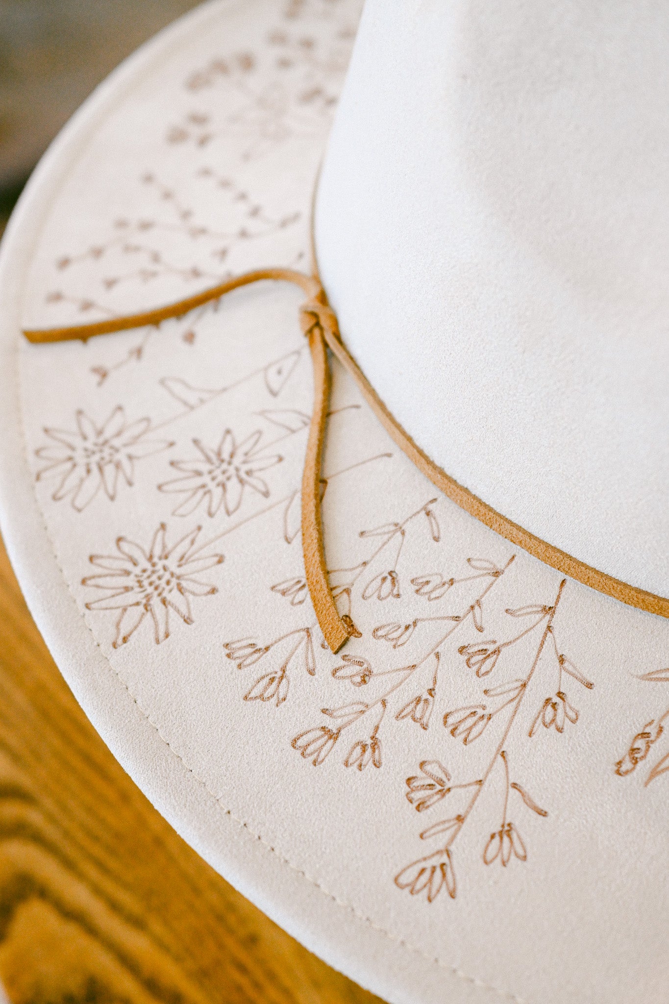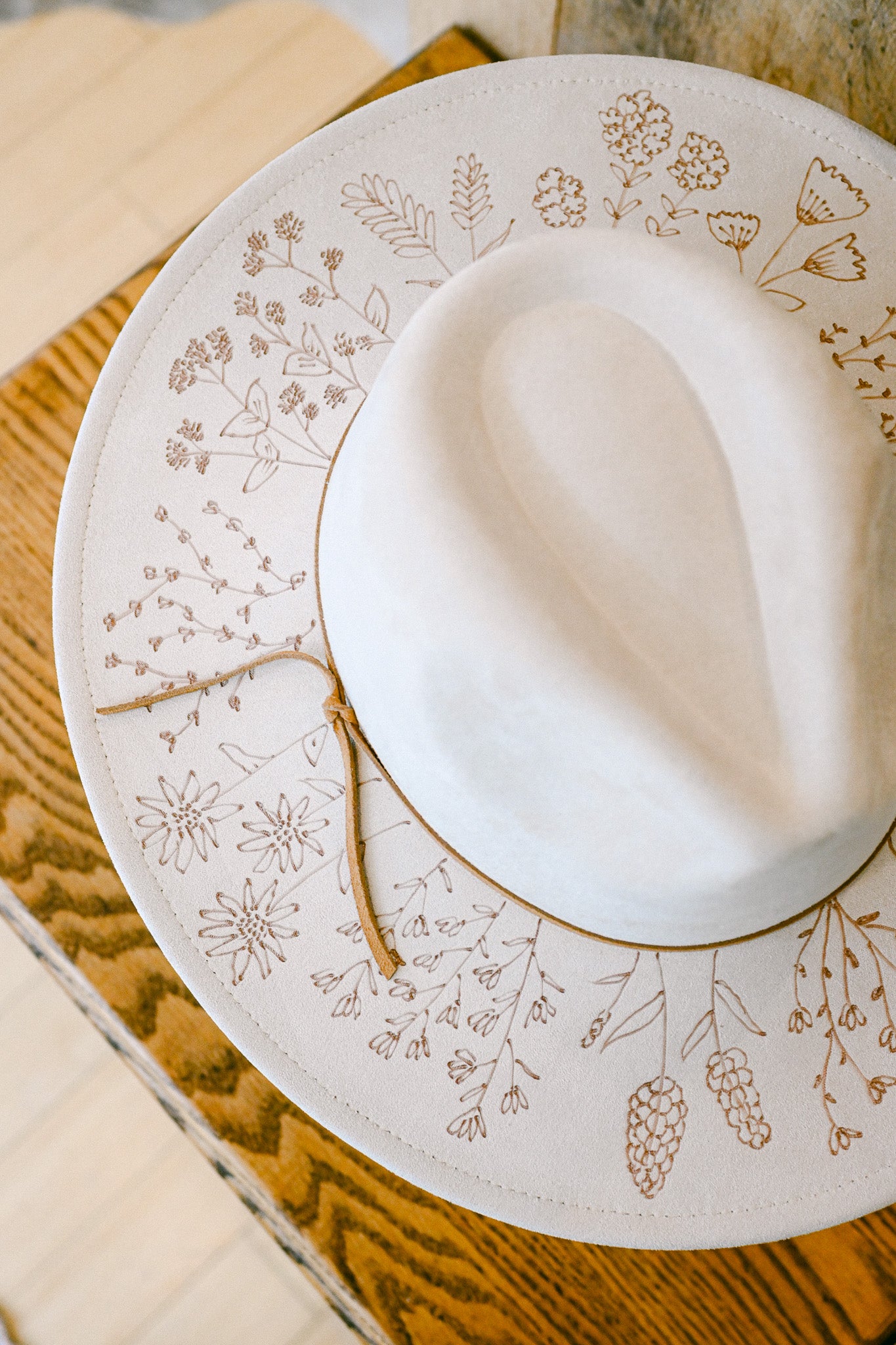Each hand-burned wildflower hat is completely unique and one-of-a-kind, and therefore not returnable or exchangeable.