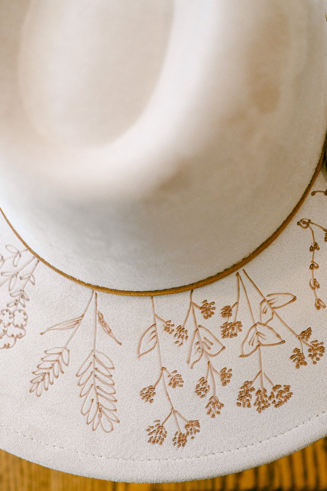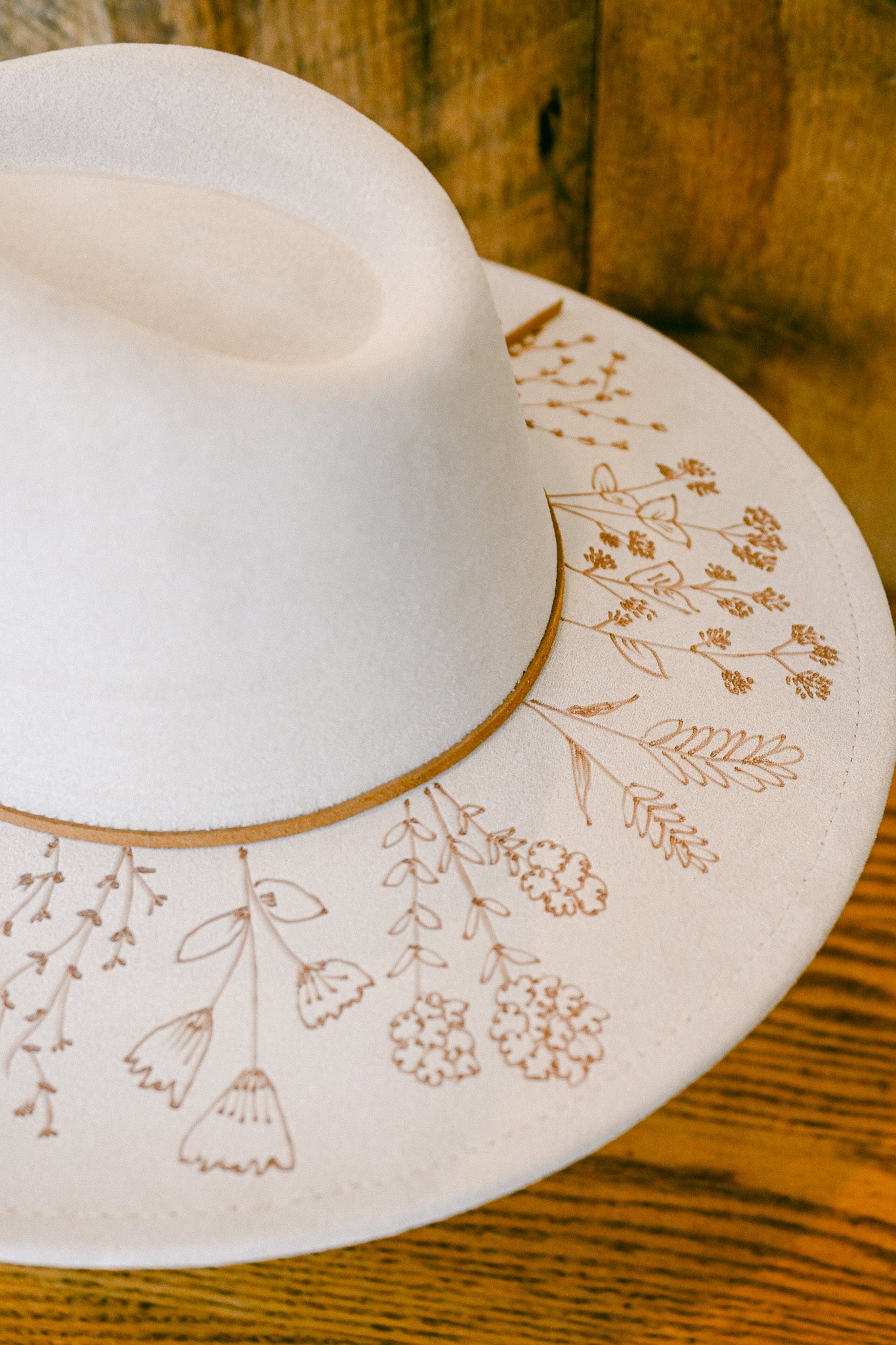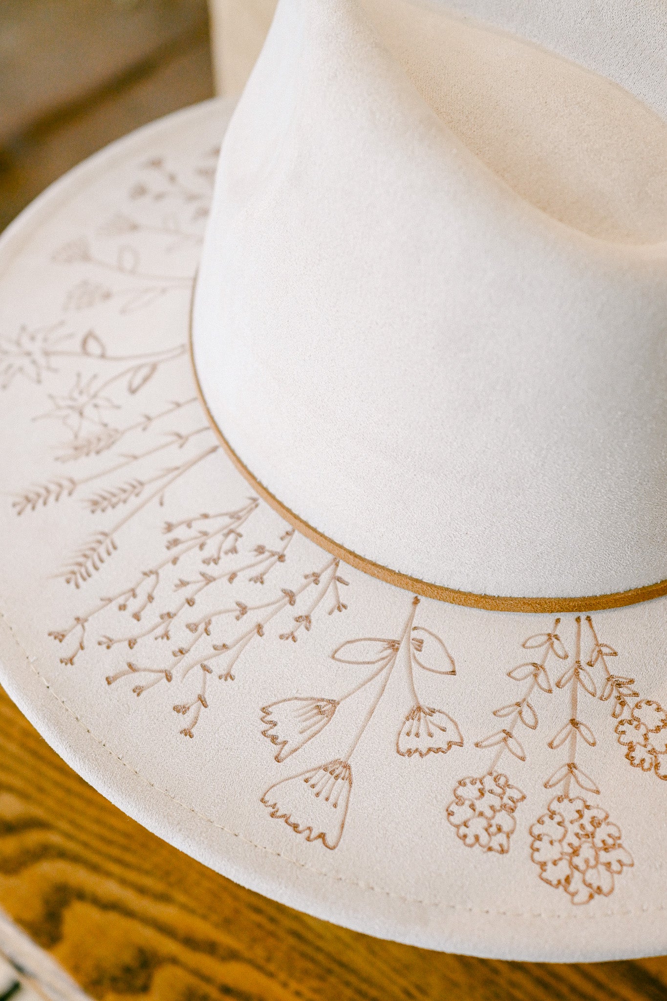 Each hand-burned wildflower hat is completely unique and one-of-a-kind, and therefore not returnable or exchangeable.