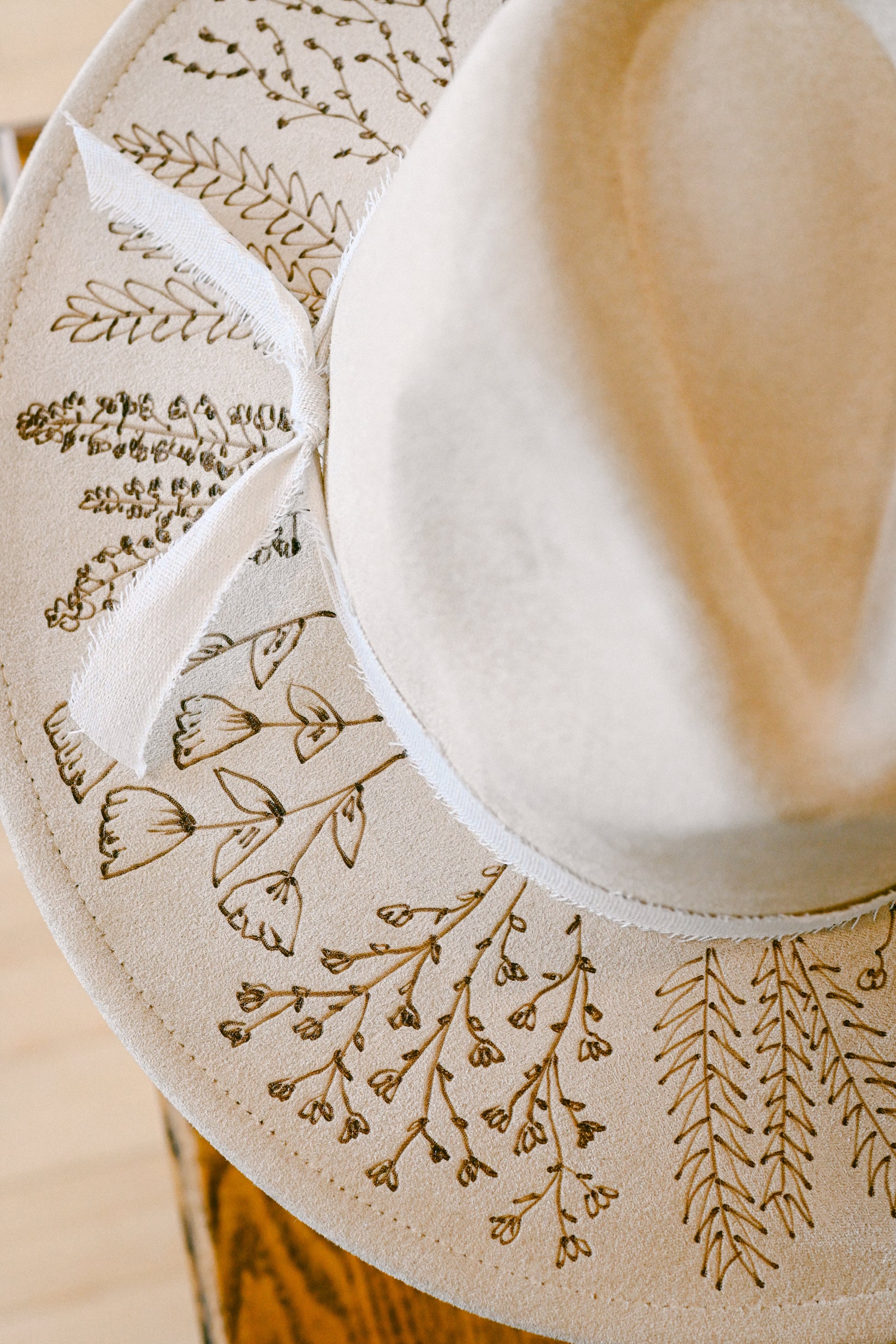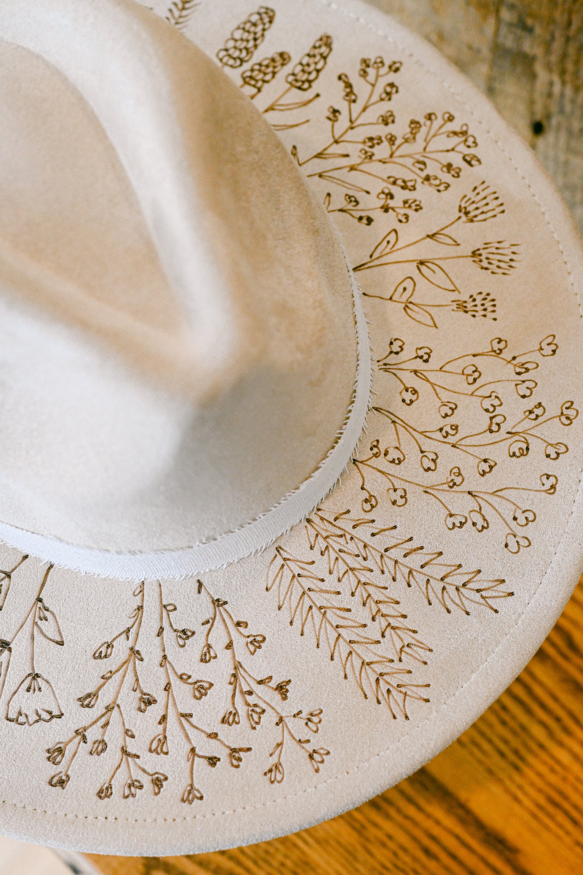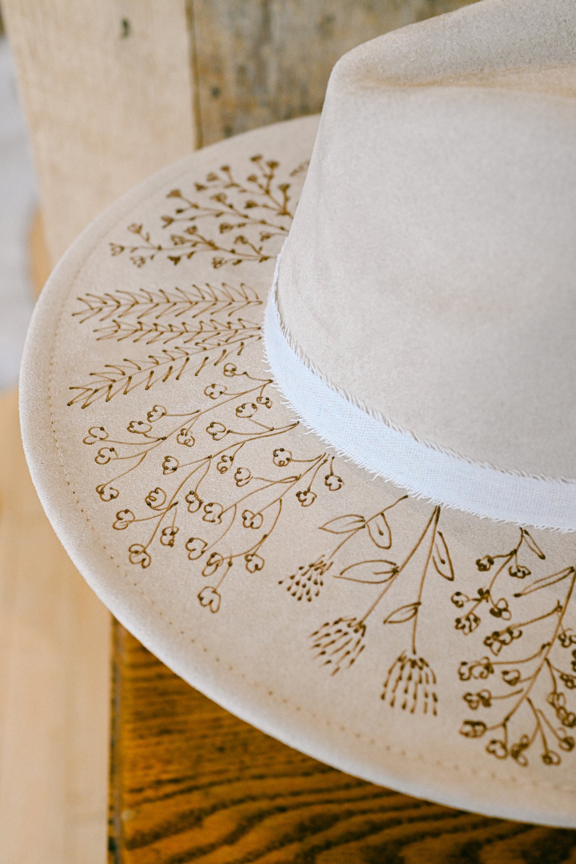 Each hand-burned wildflower hat is completely unique and one-of-a-kind, and therefore not returnable or exchangeable.
