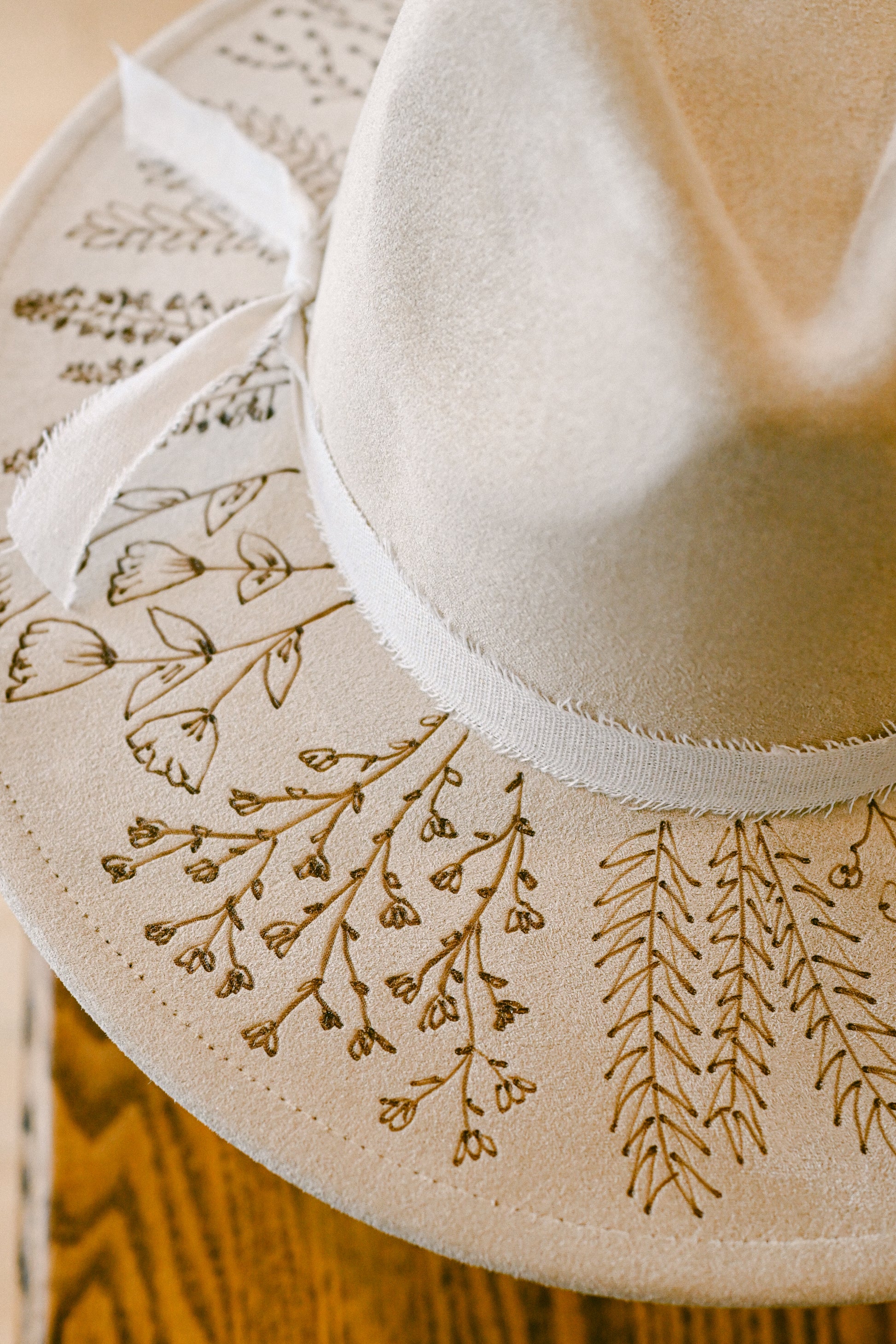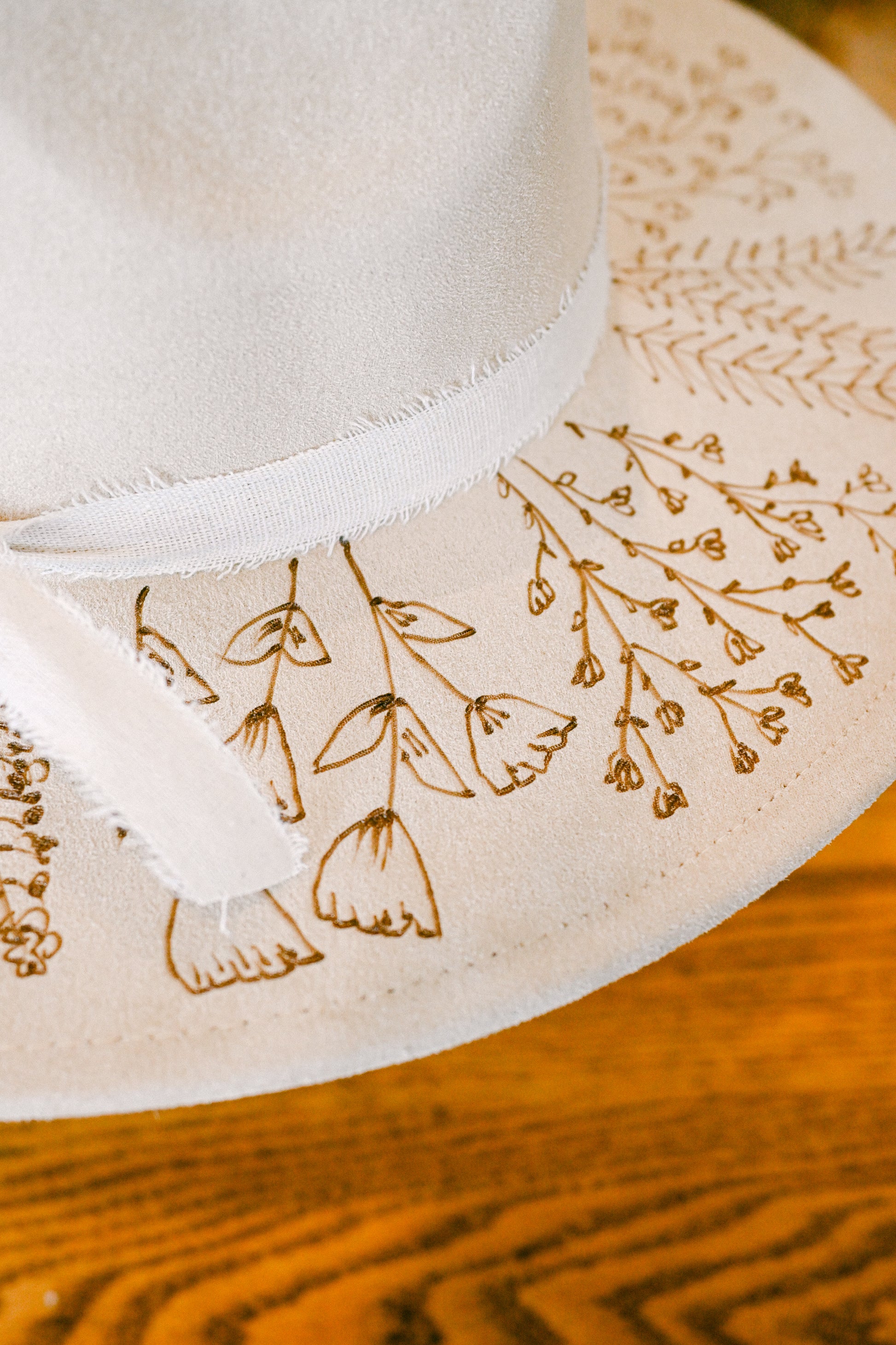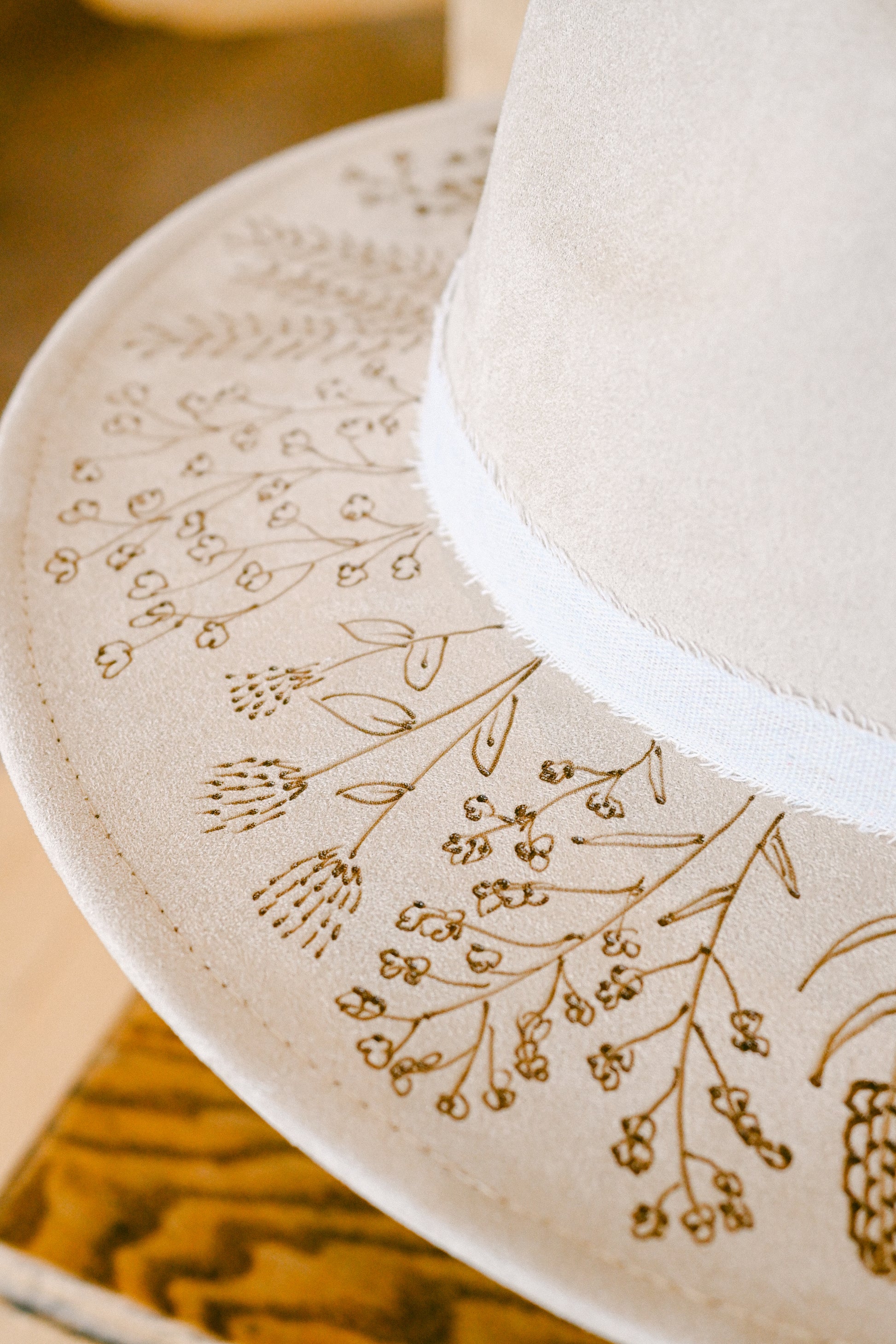 Each hand-burned wildflower hat is completely unique and one-of-a-kind, and therefore not returnable or exchangeable.