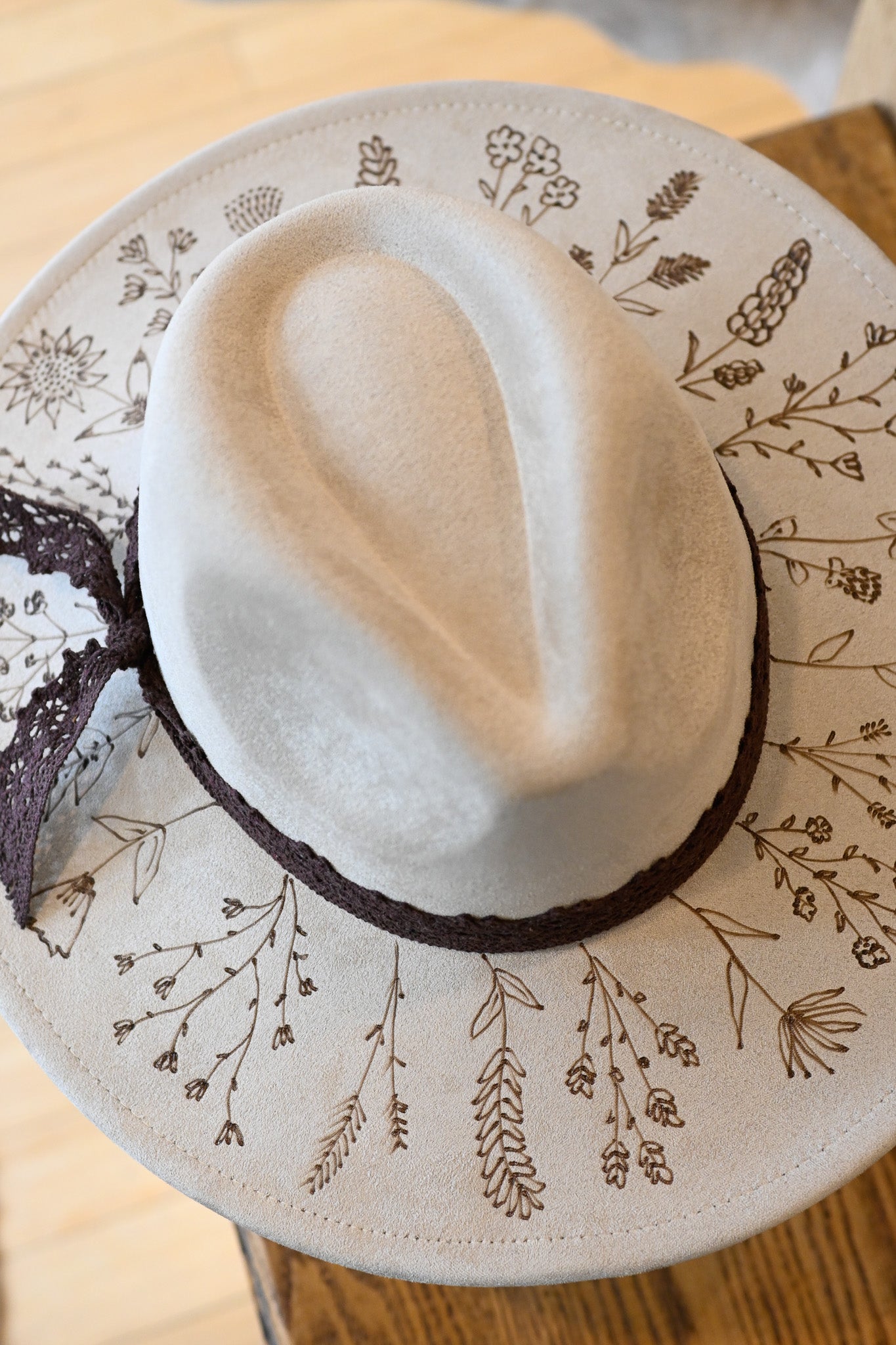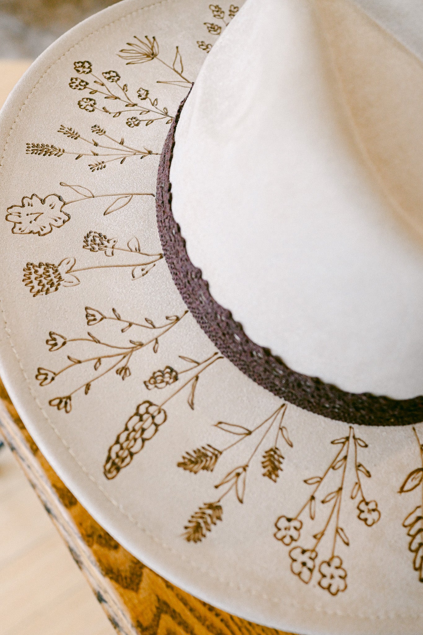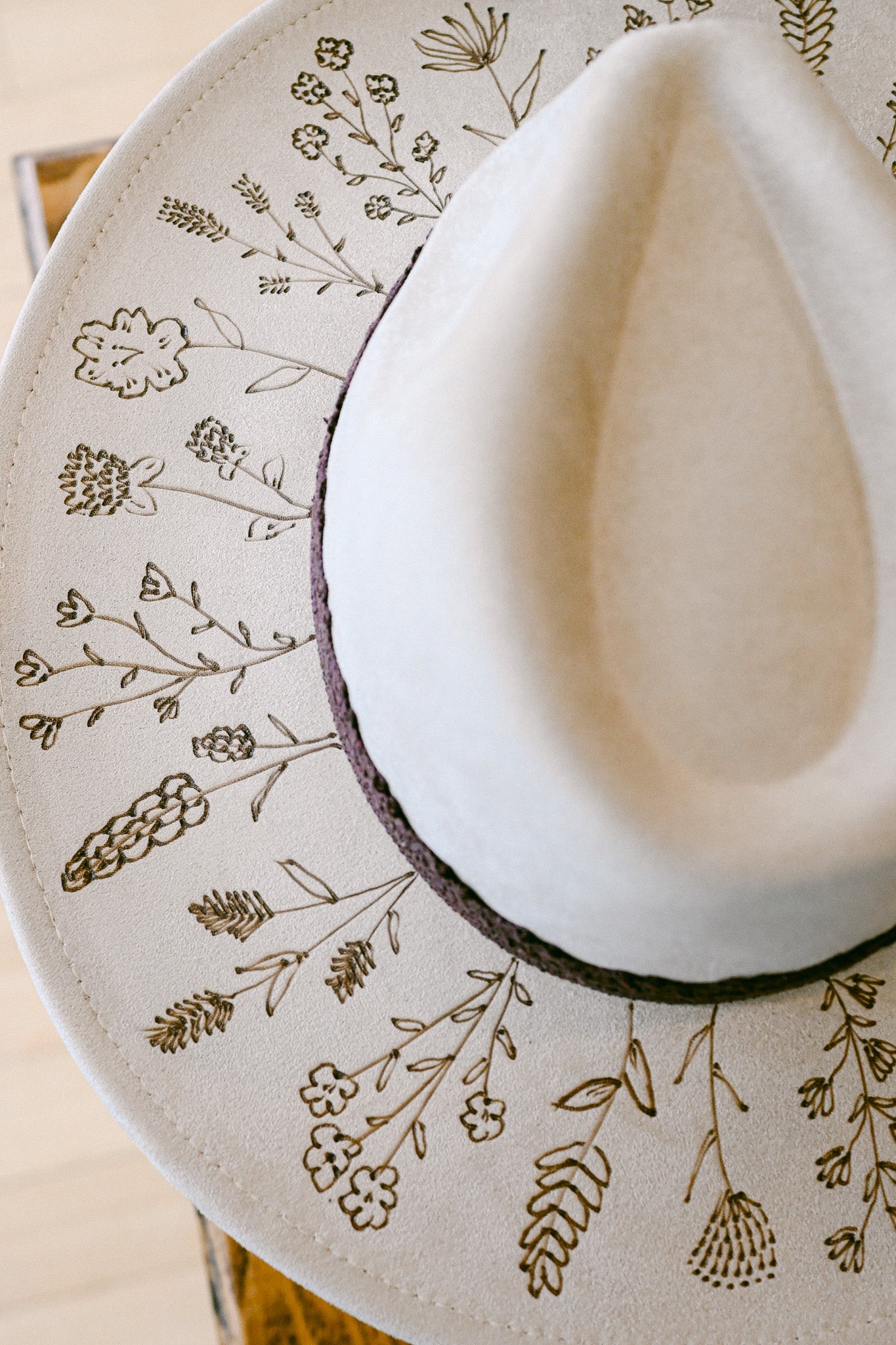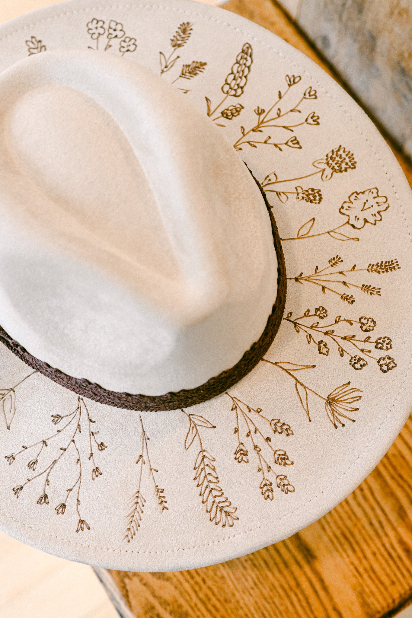 Each hand-burned wildflower hat is completely unique and one-of-a-kind, and therefore not returnable or exchangeable.