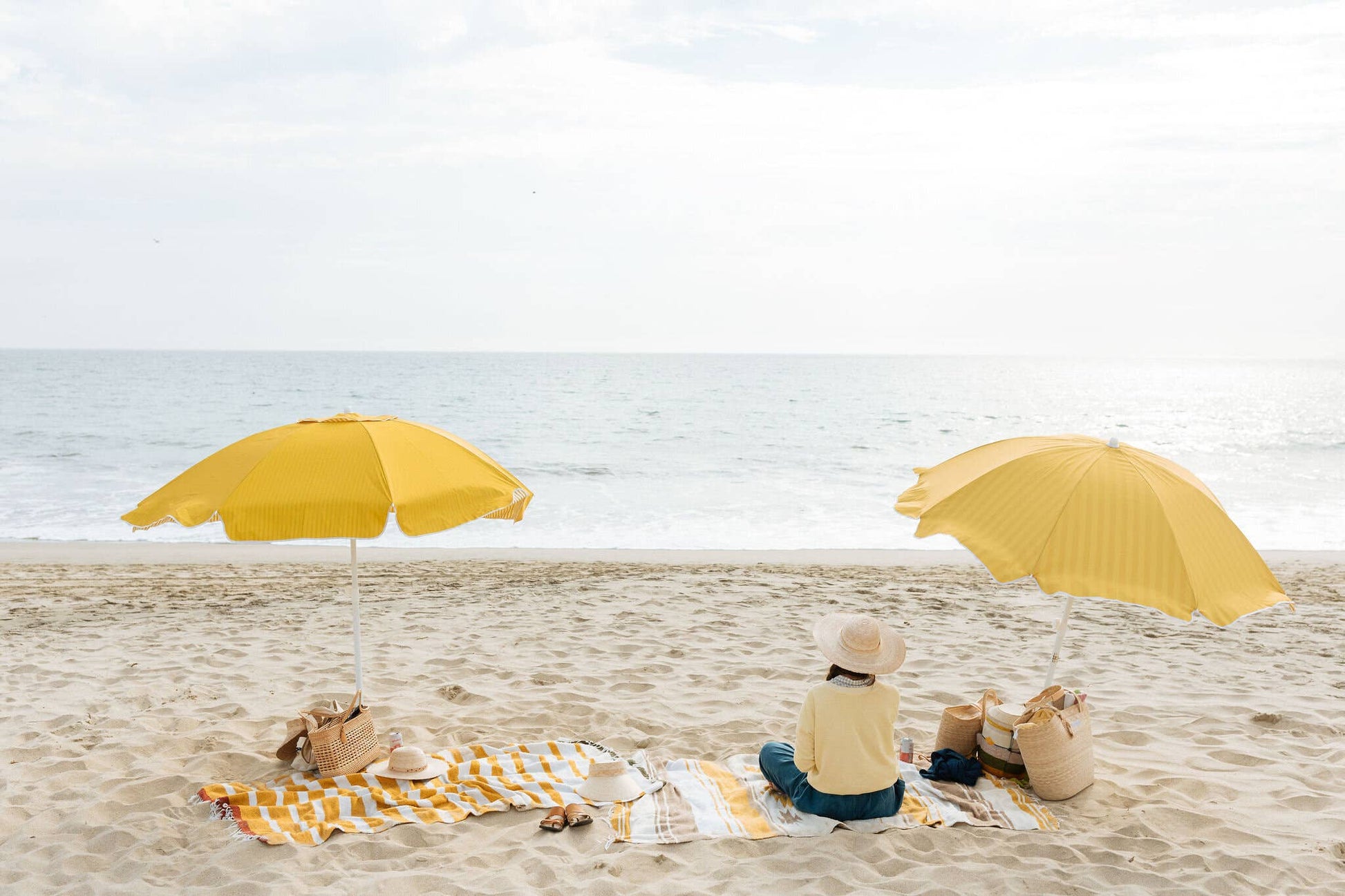 Our sunny Sol Collection blankets feature creamy white, beige, and tea-colored backdrops shot through with golden honey patterns. The perfect combination of warm yellow and neutral tones makes it extra versatile inside and out! They are big enough for a 2 - 4 person picnic and roll up in thirds for easy transport. The blankets are designed by in San Francisco and hand woven in Mexico by skilled artisans. Our leather straps are hand-made by us out of vegetable-tanned leather that ages nicely with use. Blankets are machine washable on cold gentle cycle, lay flat to dry. Dimensions: Unfolded: 83" x 51" Rolled: ~ 16.5" x 6.5"
